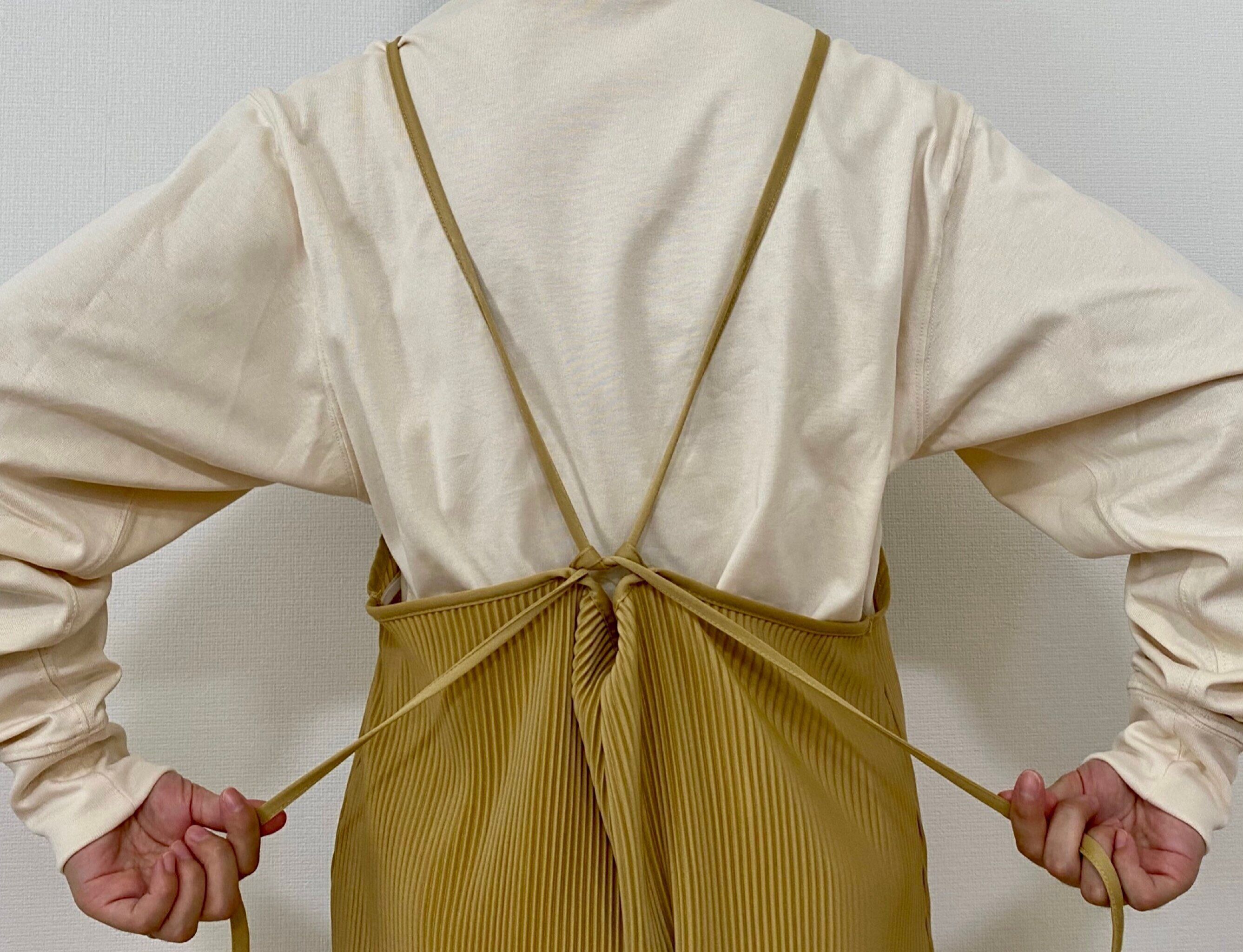 なんと後ろのヒモで裾の長さを調整可能だったのです。これなら低身長さんや高身長さんもチャレンジしやすいですよね!