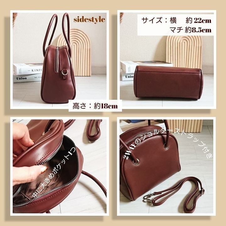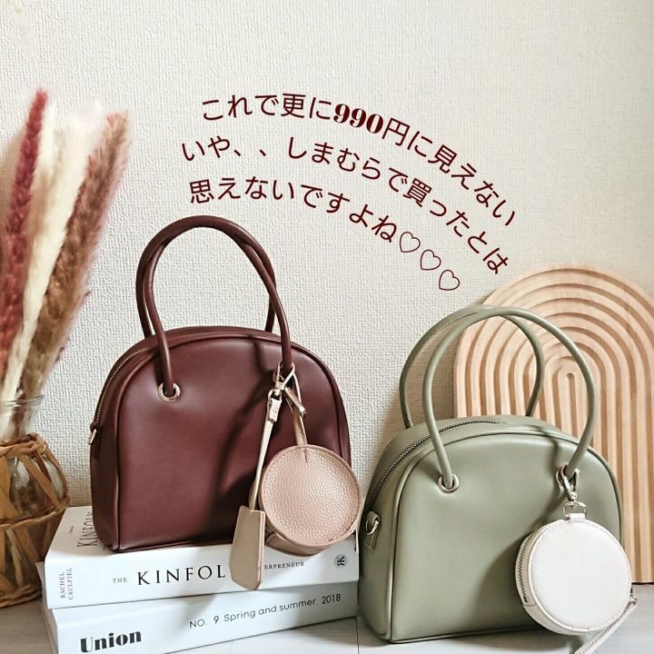 丸いフォルムが可愛いトレンドのミニボストンバッグ、こちらはなんとこの見た目で990円という他にない破格!カラーバリエーションも豊富で他にはベージュ・ライトブラウン・イエローがあったかと思います。その中で私はこの2色を購入しました。