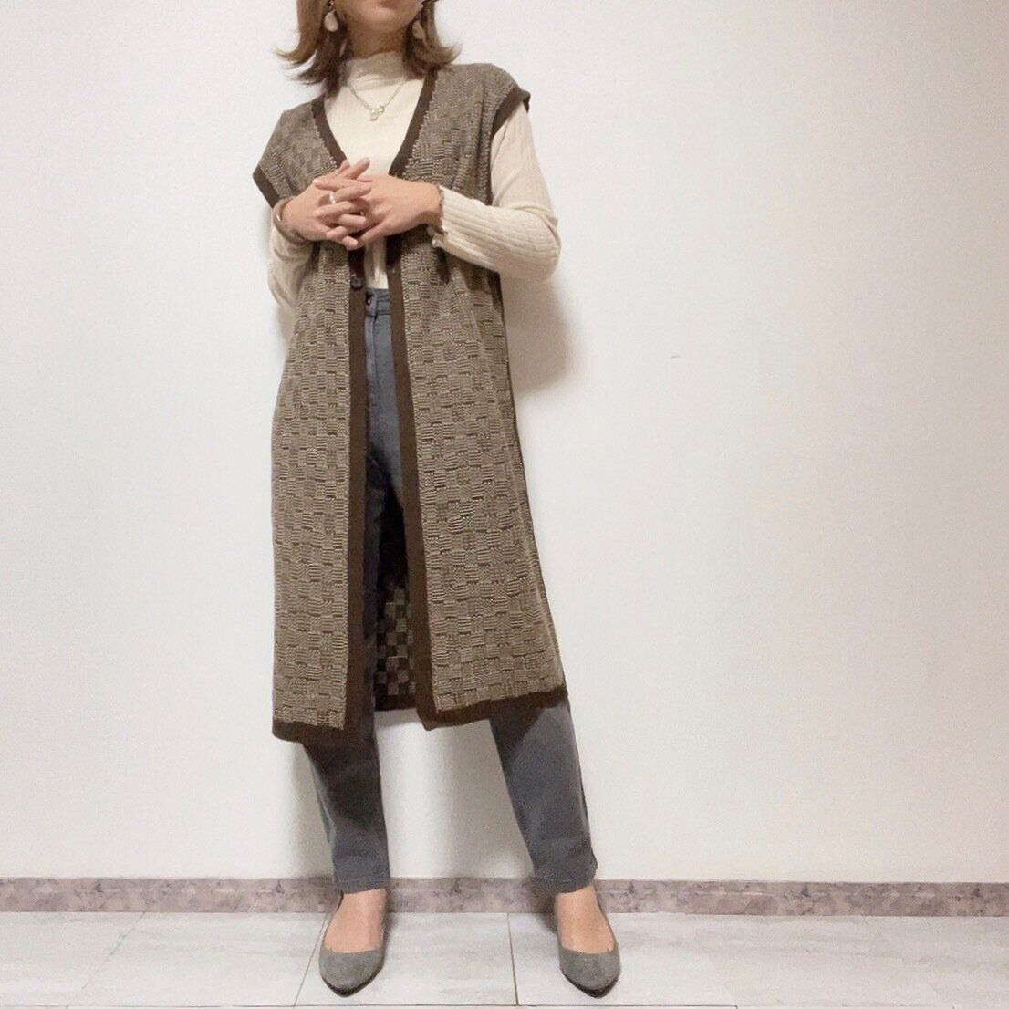 いつものコーデに羽織るだけで簡単に秋のオシャレコーデに様変わり。ずっとそんなロングジレを探していました。