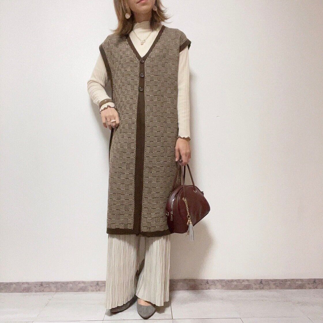 普段私は肩幅とウエストのくびれがないことがコンプレックスなのですが、ジレのおかげでカバーできるのがうれしい!