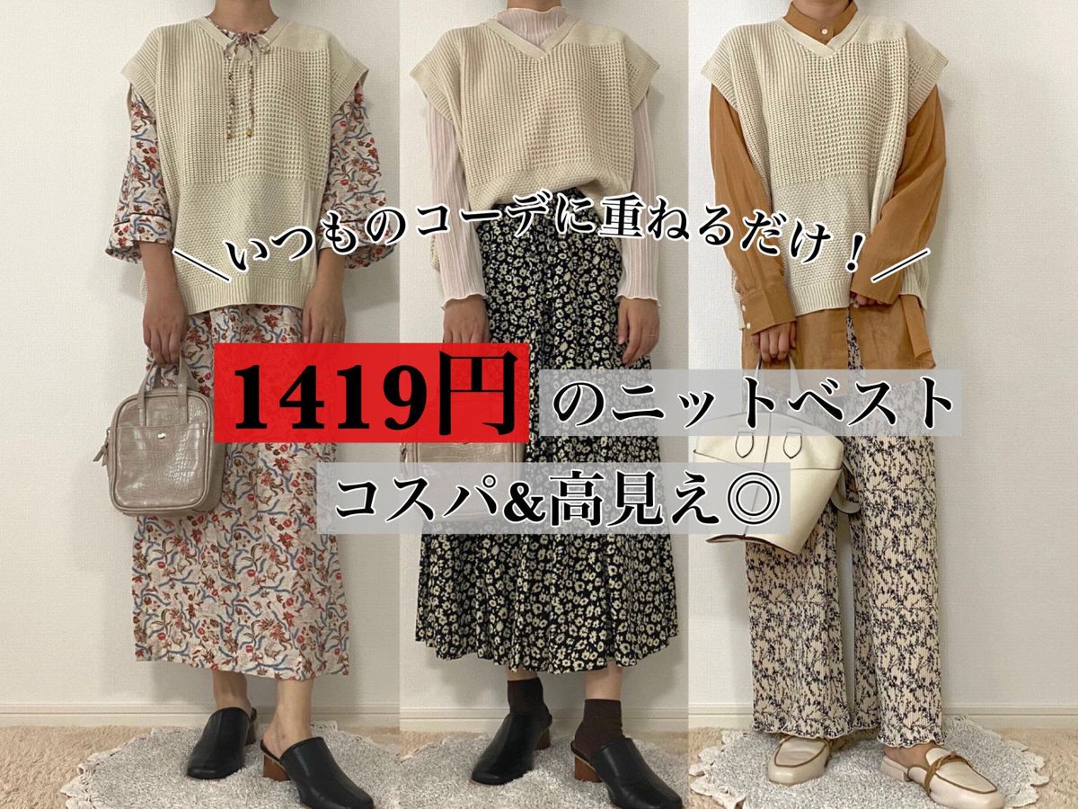 いろんな方のコーデを見てチャレンジしたいなと思いつつ勇気が出なかったんですが、今回しまむらでベスト初心者の私でも着回せそうな可愛いベストを発見したのでご紹介します!