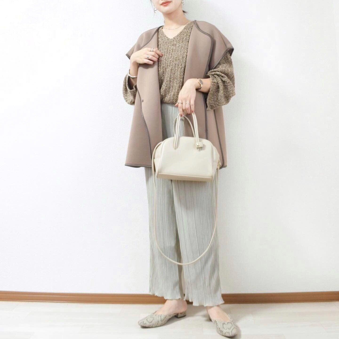 今年らしいスタイリングになるので迷った際はプリーツパンツを合わせてみてはいかがでしょうか。