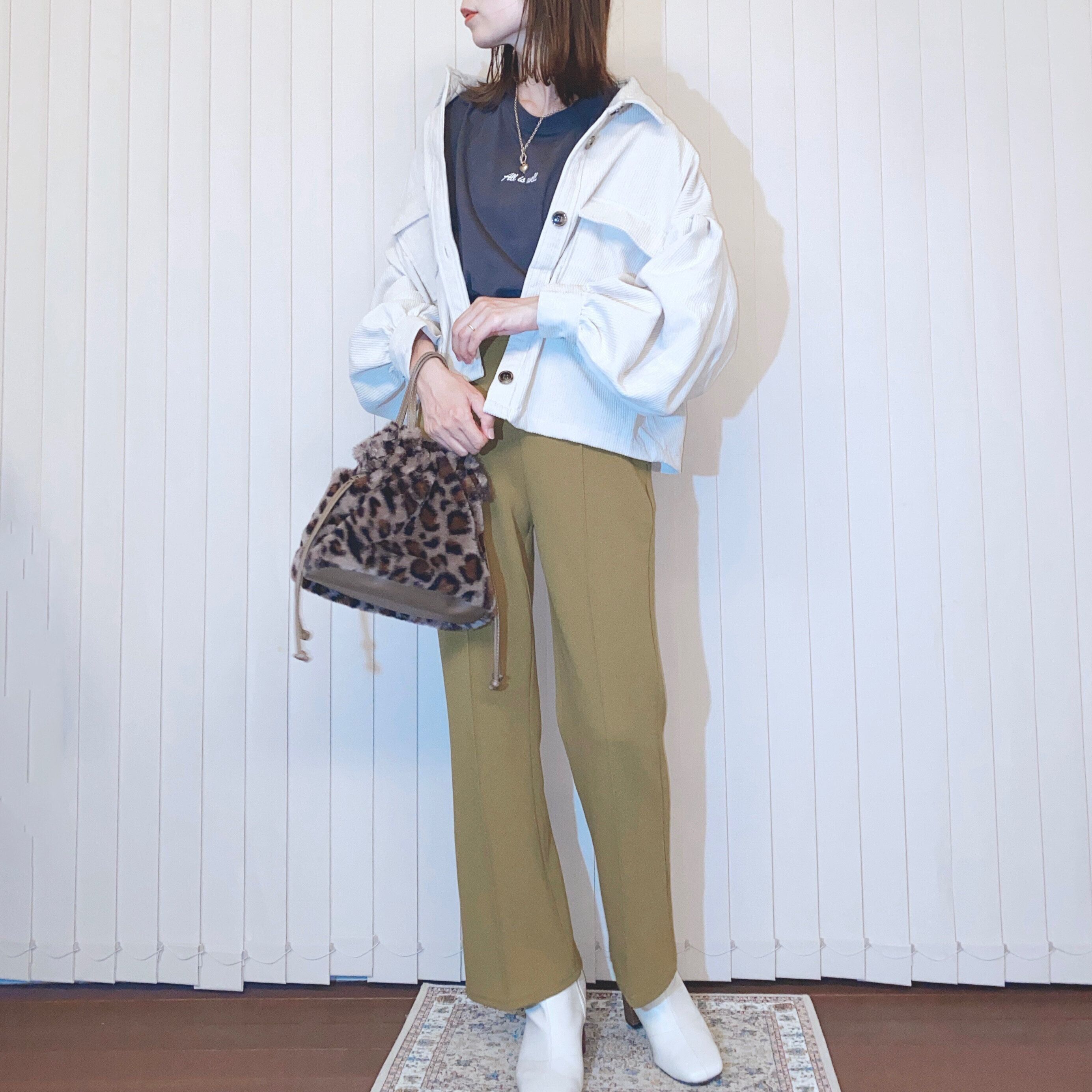 秋カラーでまとめたコーデにアイボリーカラーが映えます。