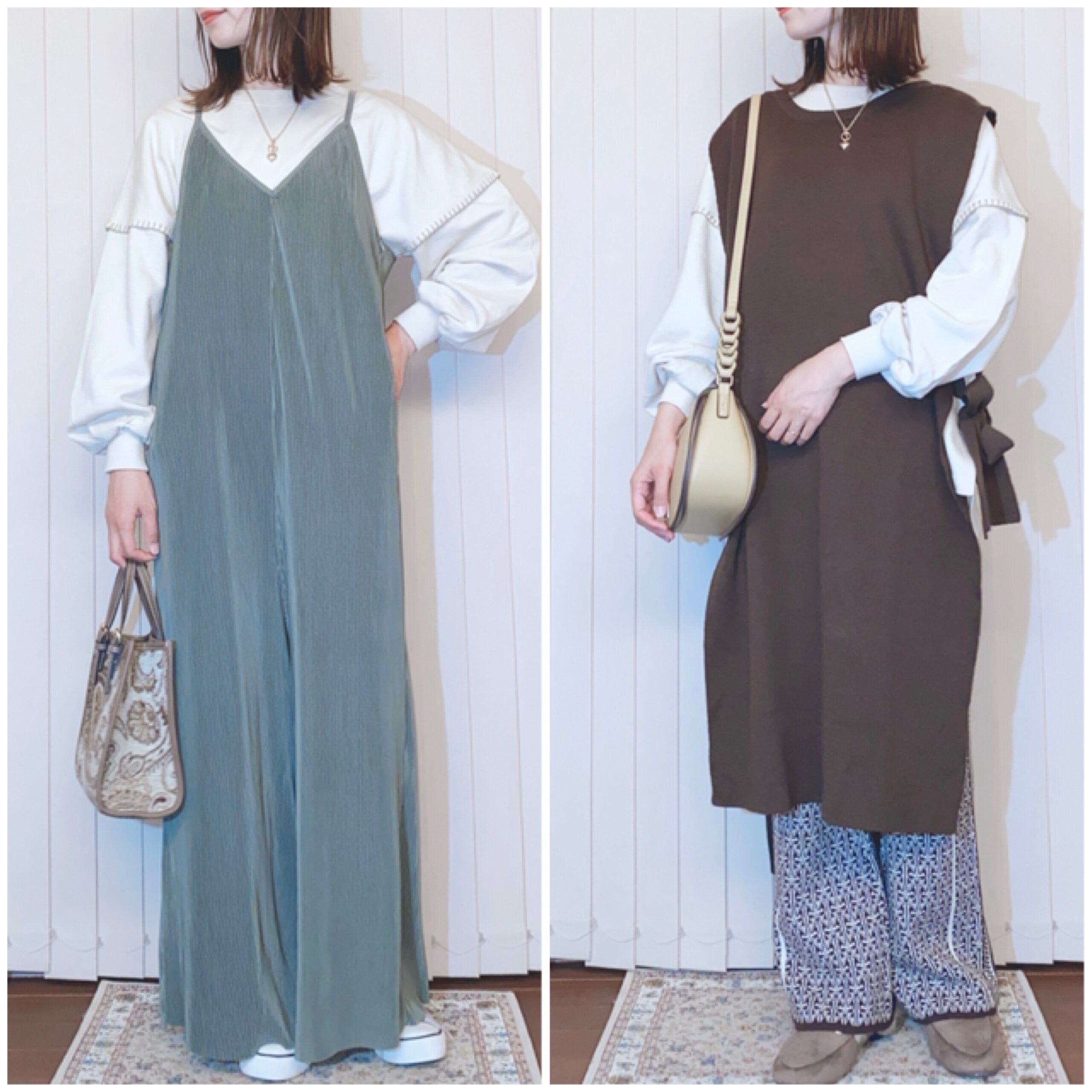 サロペットやベストなどと合わせて、敢えて袖のステッチを見せると こなれた印象になります。