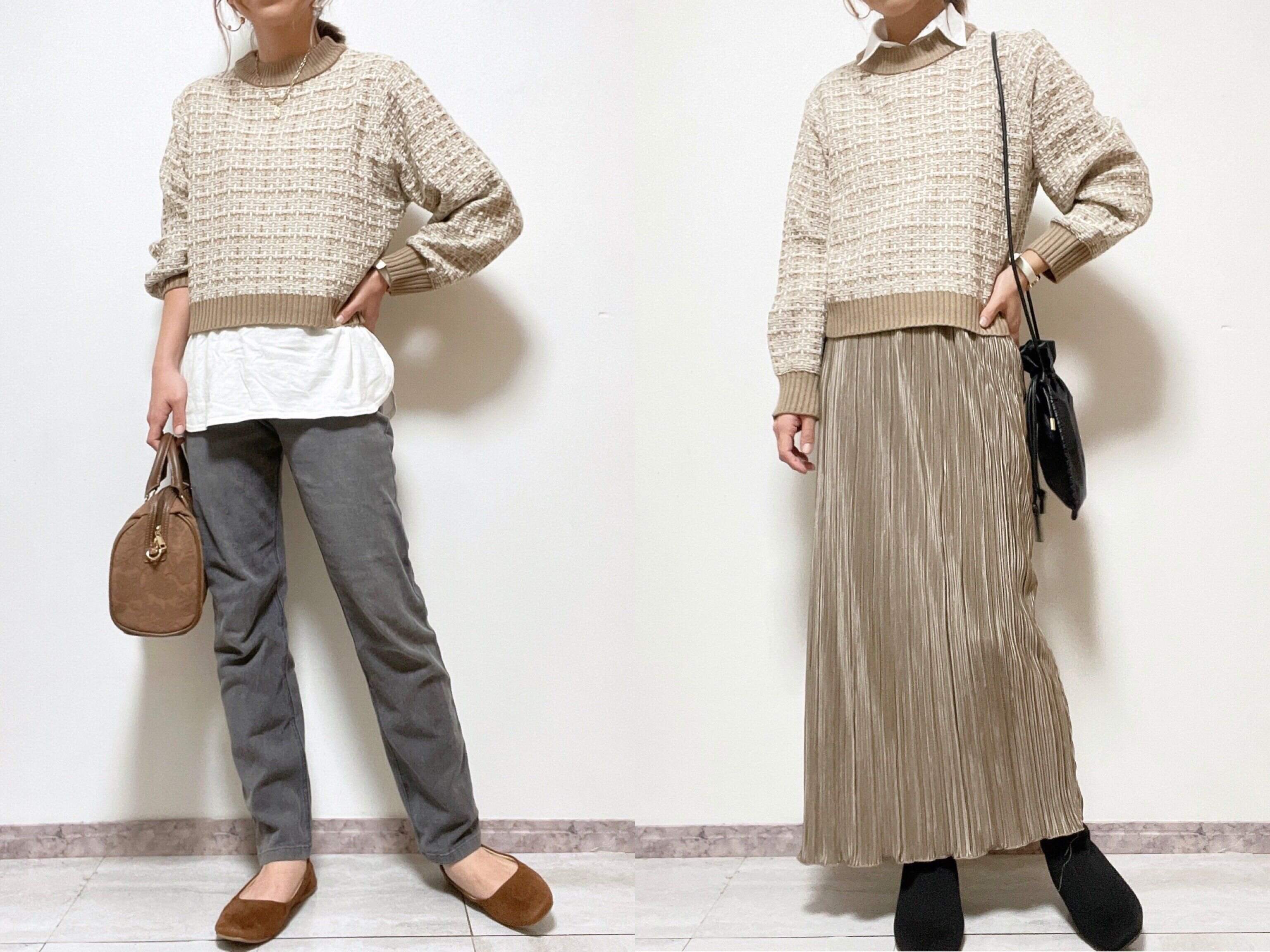 ニットアイテムと一言で言ってもさまざまなデザインがあり、秋冬には欠かせないアイテムですよね。1枚でもかわいく着られますし、合わせるものによって雰囲気がガラリと変わるのも面白くて魅力的です。