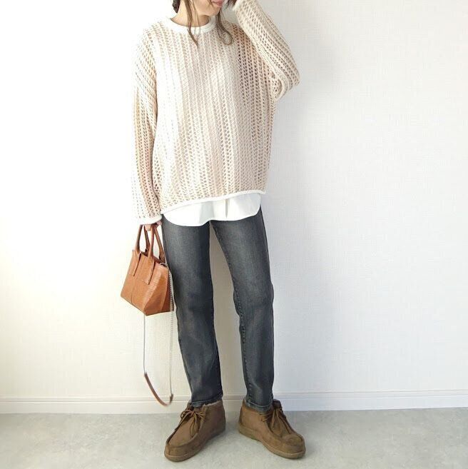 アンクル丈のパンツに合わせれば丈感とぴったりで足元寒々しく見えません。