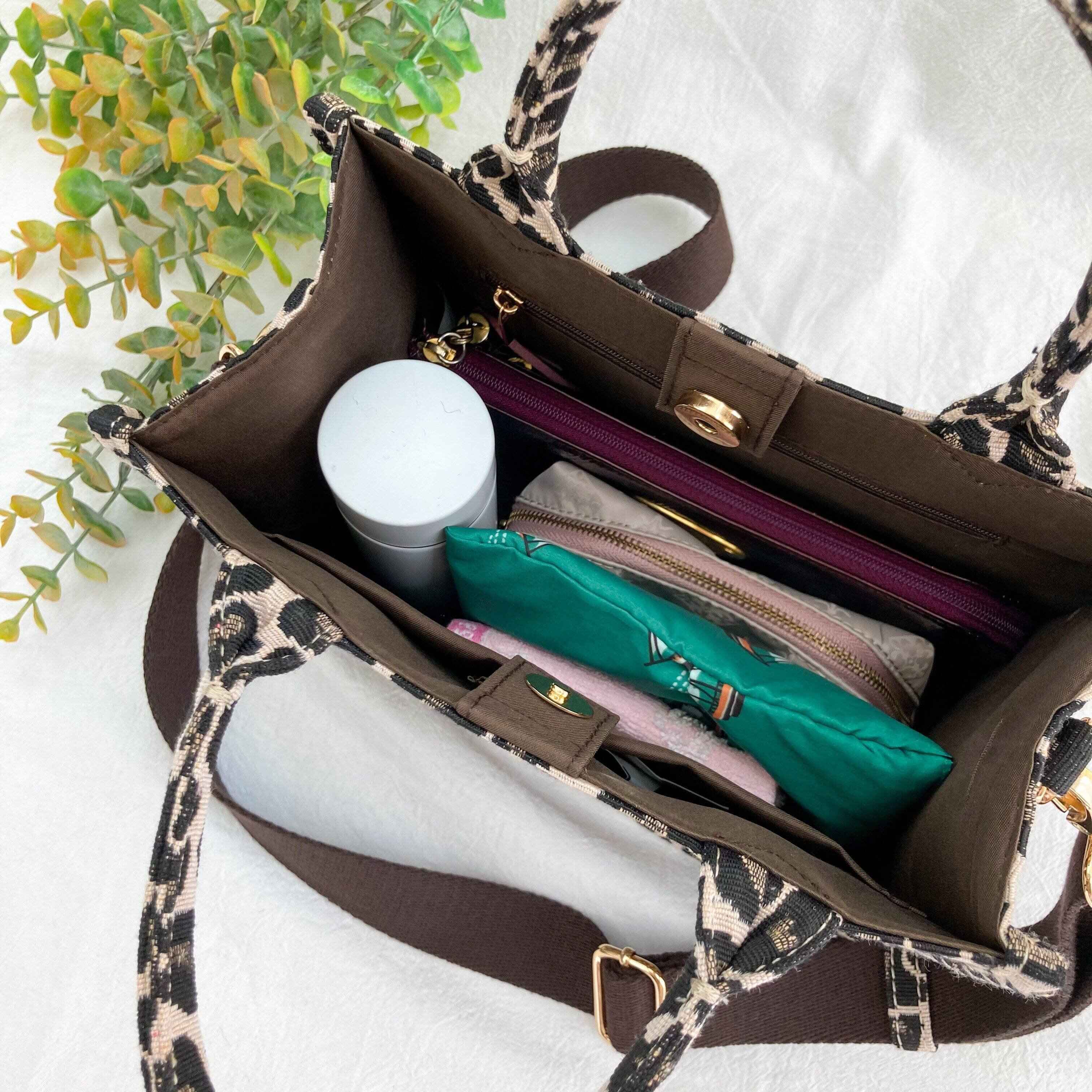 ハンドル持ちとショルダー持ちができる、2WAYのレオパ柄トートバッグ。柄はプリントではなく、ジャガード織り生地が使われていてリッチな質感です!