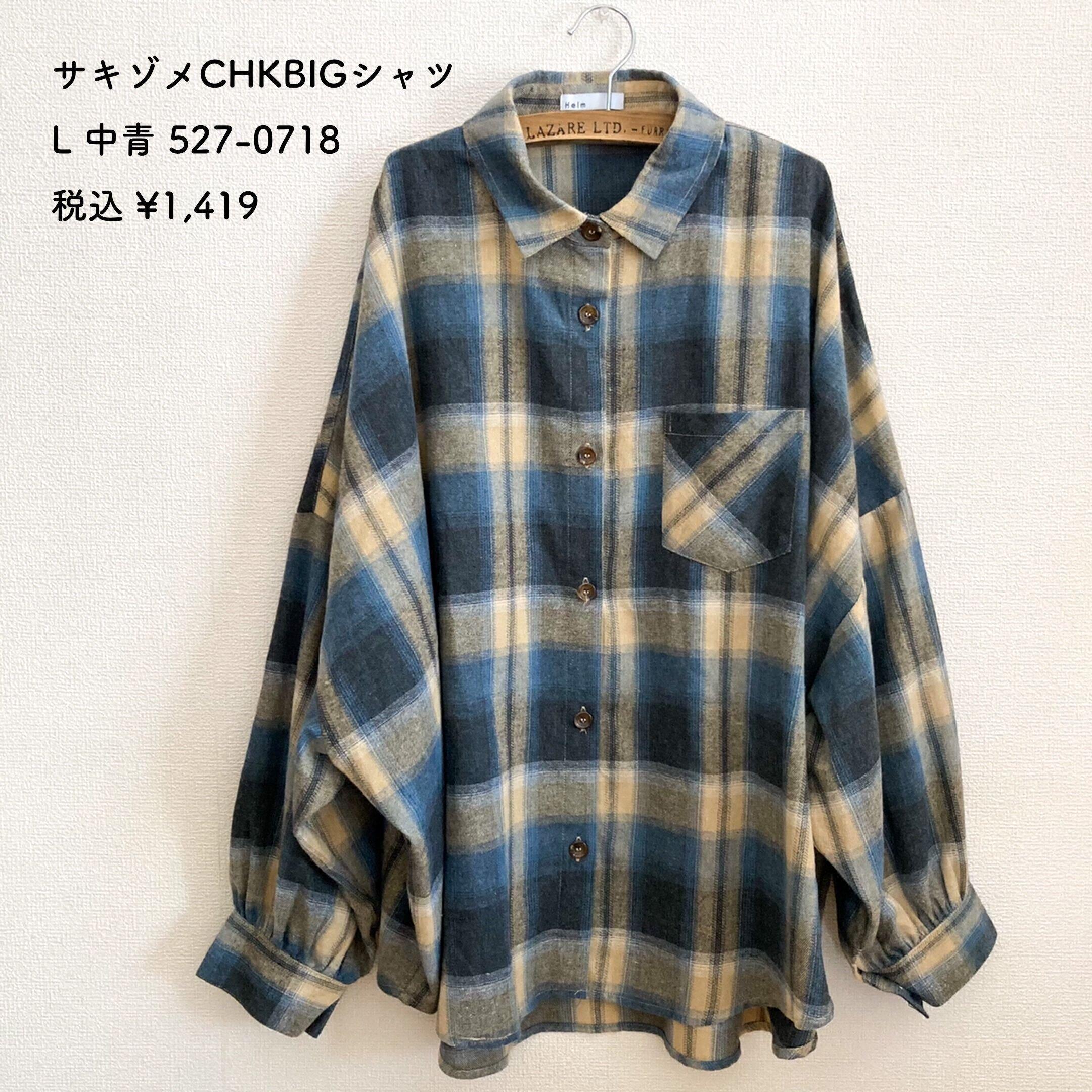 くすんだブルーにイエローベージュの大きめチェックが大人かわいいシャツ。ほんのり起毛した生地は柔らかくて温かみがあります。