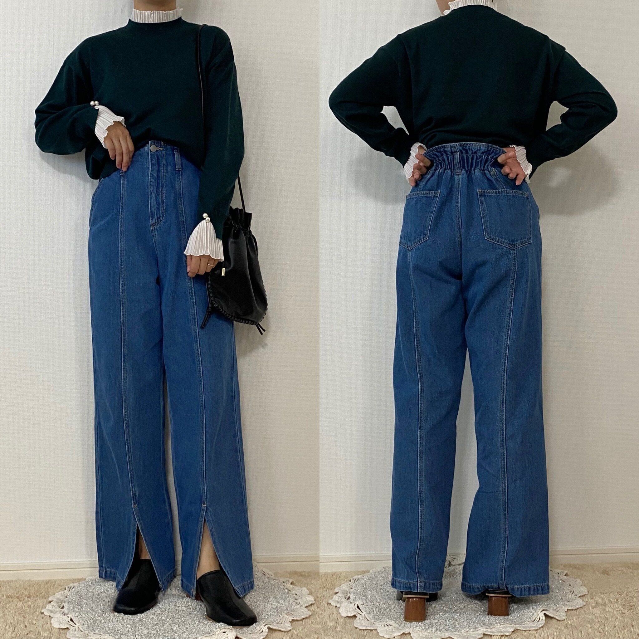 今回わたしが履いたのは6月に一度発売され、今回も新色とともに再販されるデニムです!新色の方は濃青という色で今回ご紹介したデニムよりも濃いめのデニムで秋冬コーデにさらに合わせやすい仕様になっているようですよ!