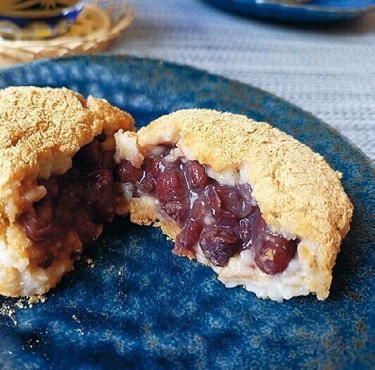 耐熱容器に、オートミール20g、水120ml、砂糖5g、塩少々を入れて混ぜ、10分おく。レンジで加熱→混ぜるを5回繰り返す(1回目は1分加熱、2~5回目は30秒加熱)。バットにオートミールを広げてさまし、あんこを包んできなこをまぶす。