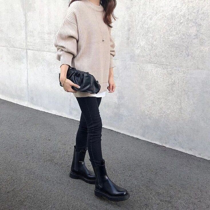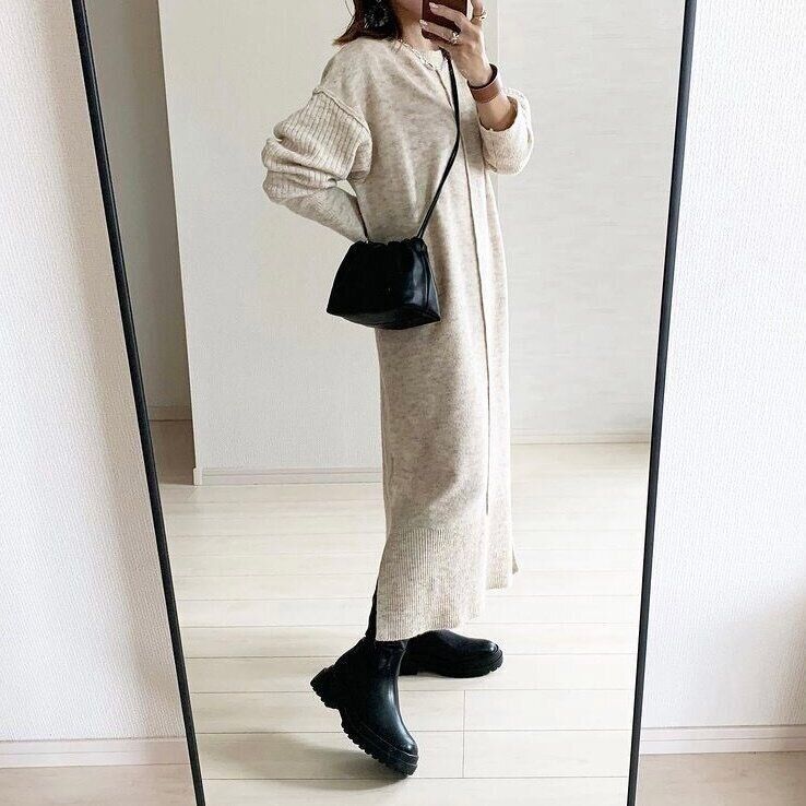 ニットワンピ×黒ブーツで冬の時短服は完成!