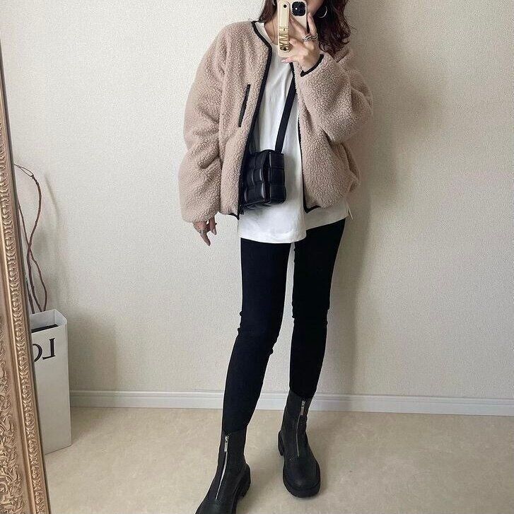 ボリュームあるボアアウターはショート丈でコンパクトに
