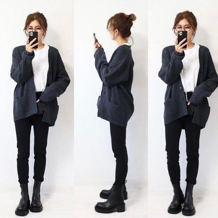 黒ブーツに何を合わせようか悩んだら、ユニクロの「スキニーハイライズアンクルジーンズ/3,990円」のブラックをチョイス!つま先まで黒で統一すると脚長効果も得られます。アウターも同じトーンにすると全身スラッと見えるのでそのままマネしたくなりますね!