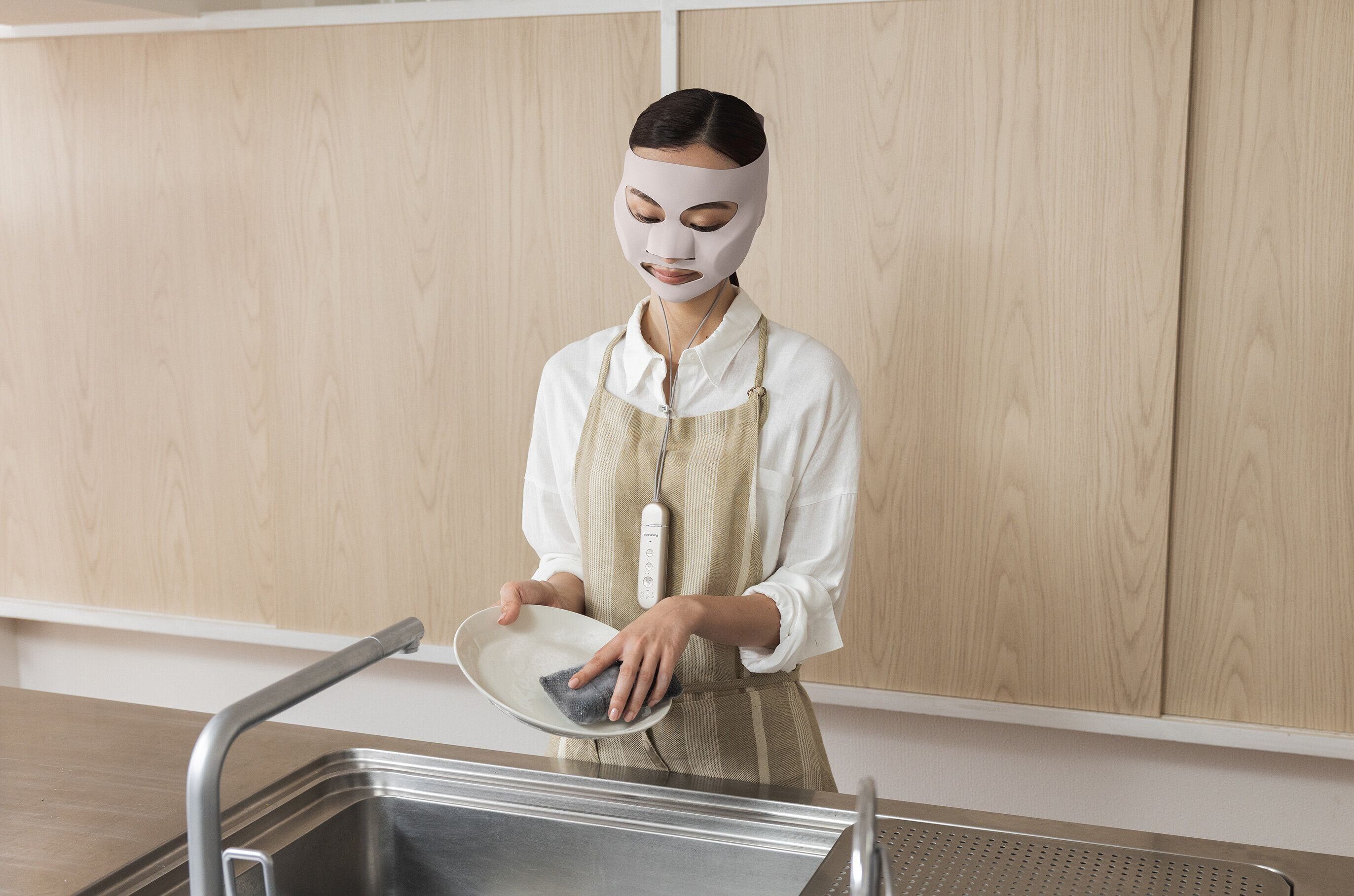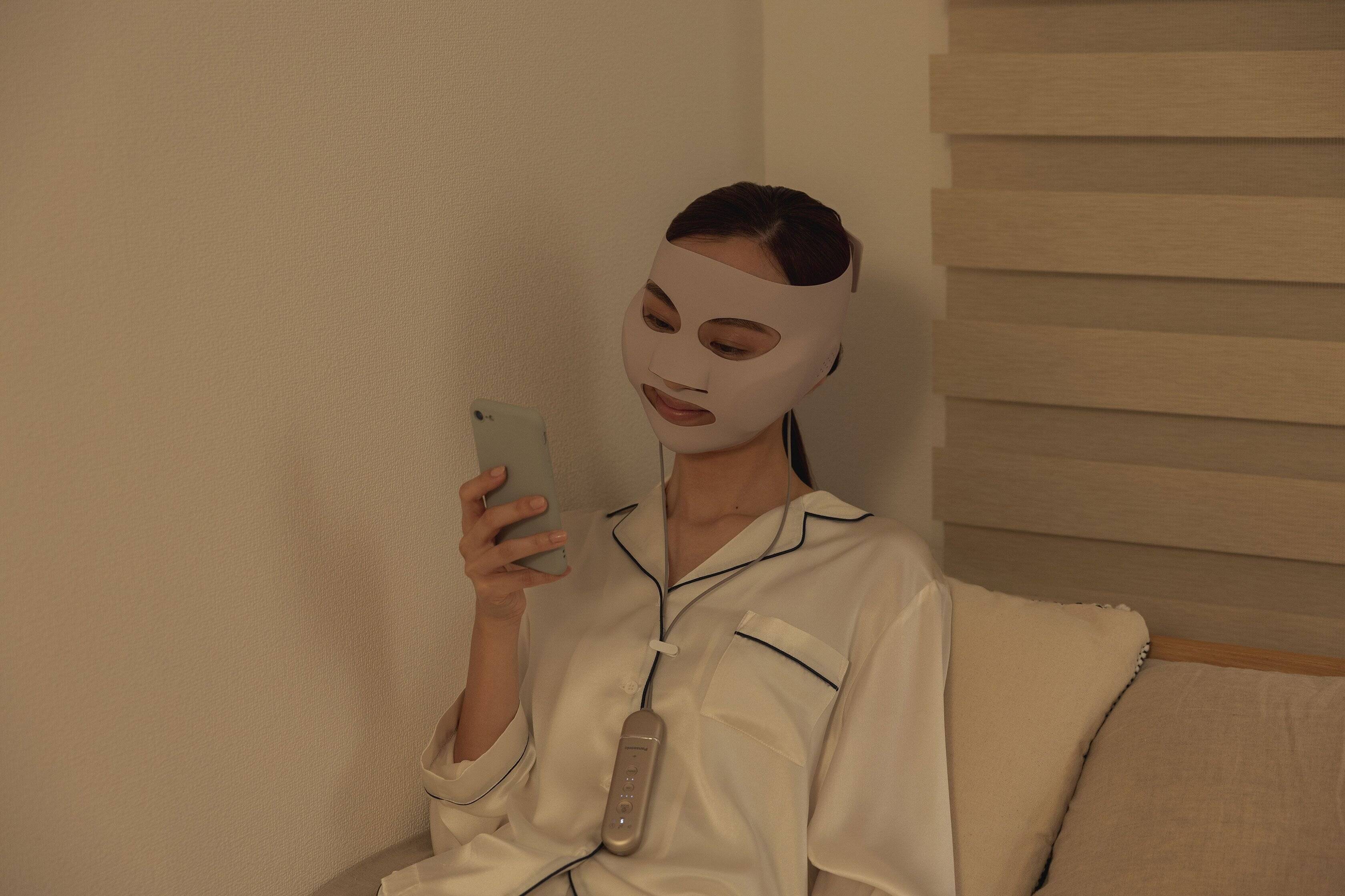 このシリコン型のマスク、たくさんの人にフィットするウェアラブル美顔器をと、約4500人の顔データをもとに21回もの試作を積み重ねて開発されたそうです。だから、とにかくつけ心地がよく、フィットするから家事をしながら、在宅勤務しながらの“ながら美容”が癒しの時間に変わります。