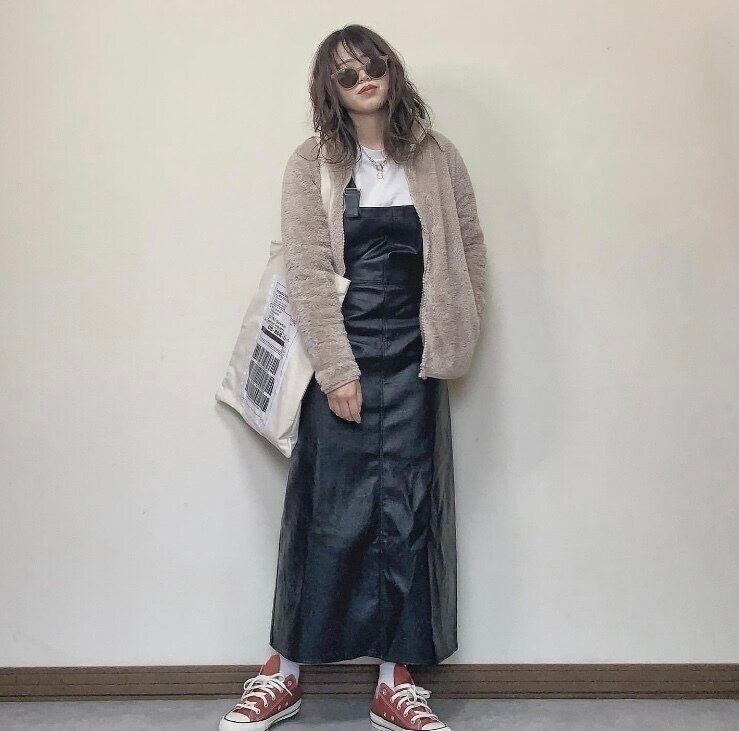 幼く見えがちなサロペットも落ち着いたカラーのフリースジャケットを羽織ることで大人っぽさもプラスされますよね。