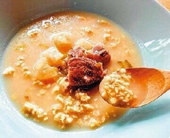 レンジで米化したオートミールに、市販のスープを注いで完成。1人ランチや気力がないときの救世主。お気に入りは、カルディの「ソルロンクッパ」。