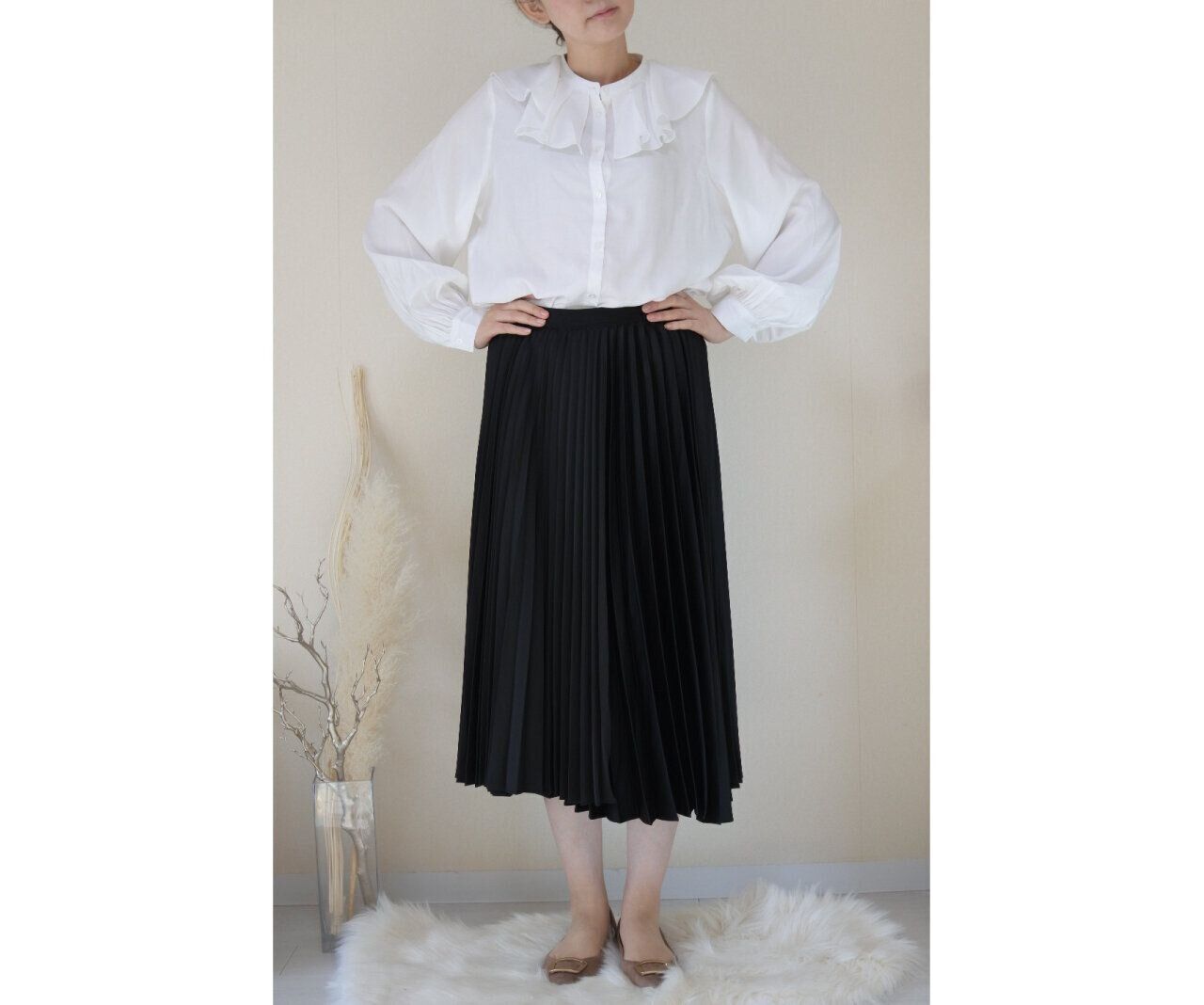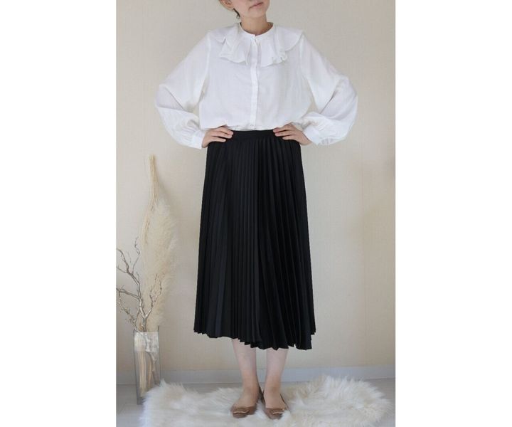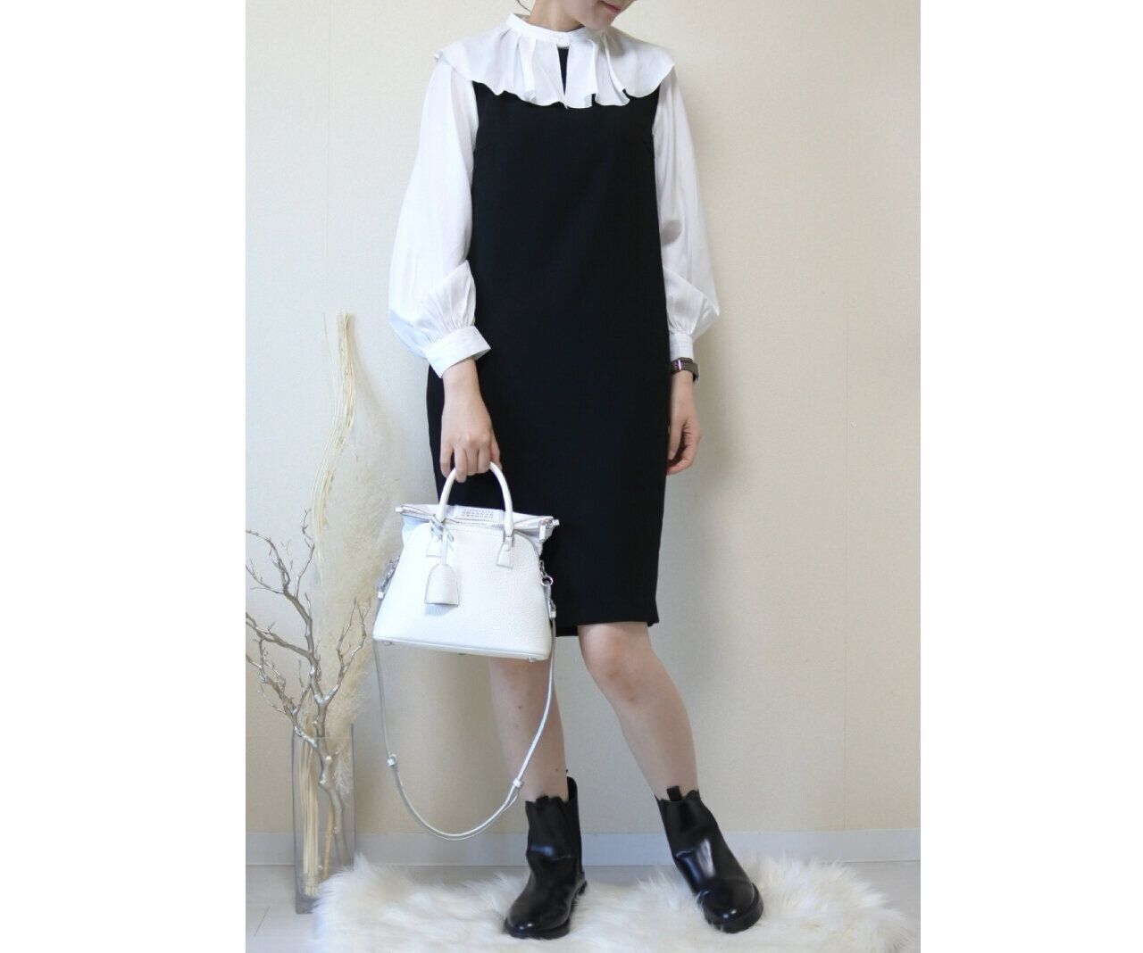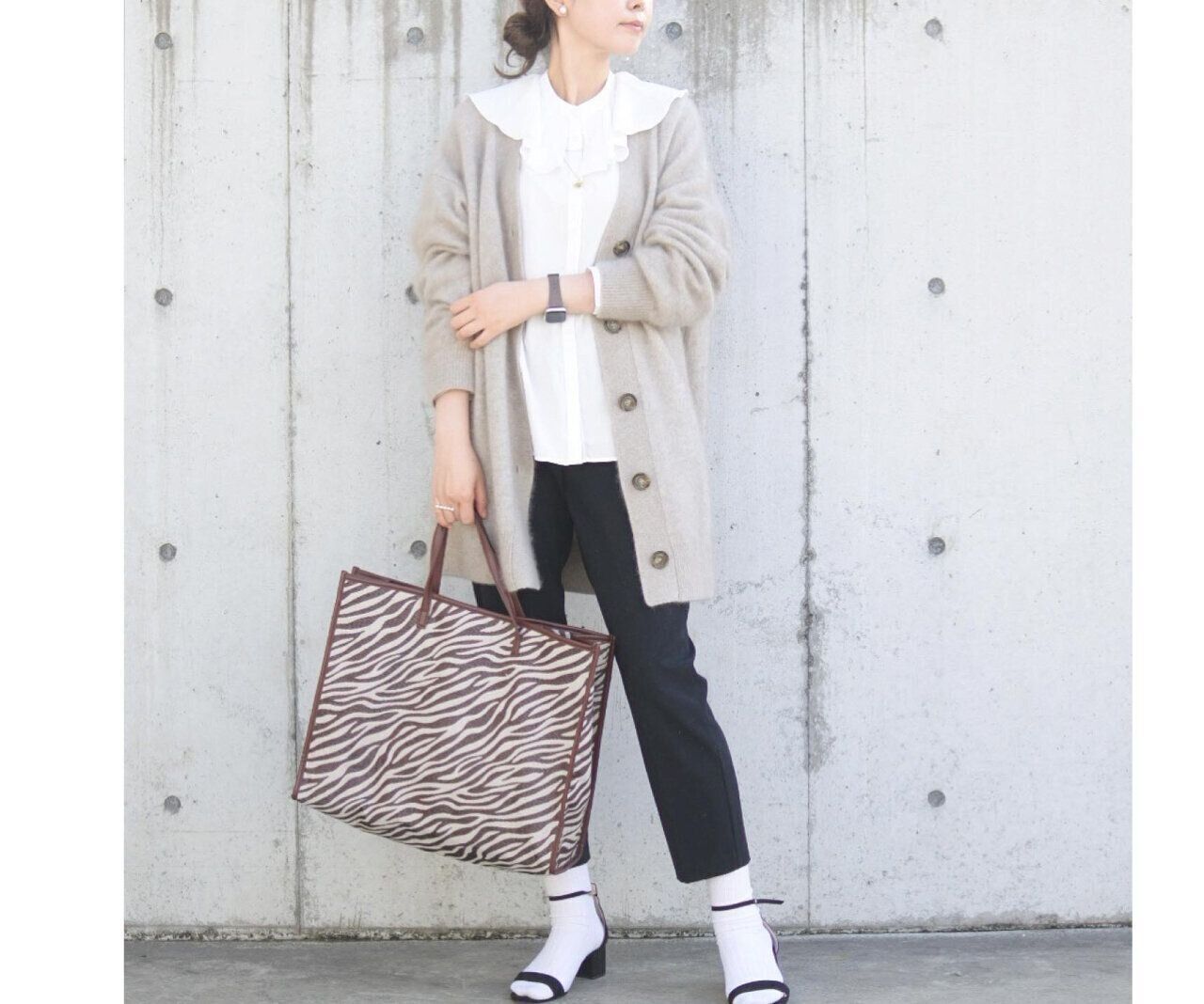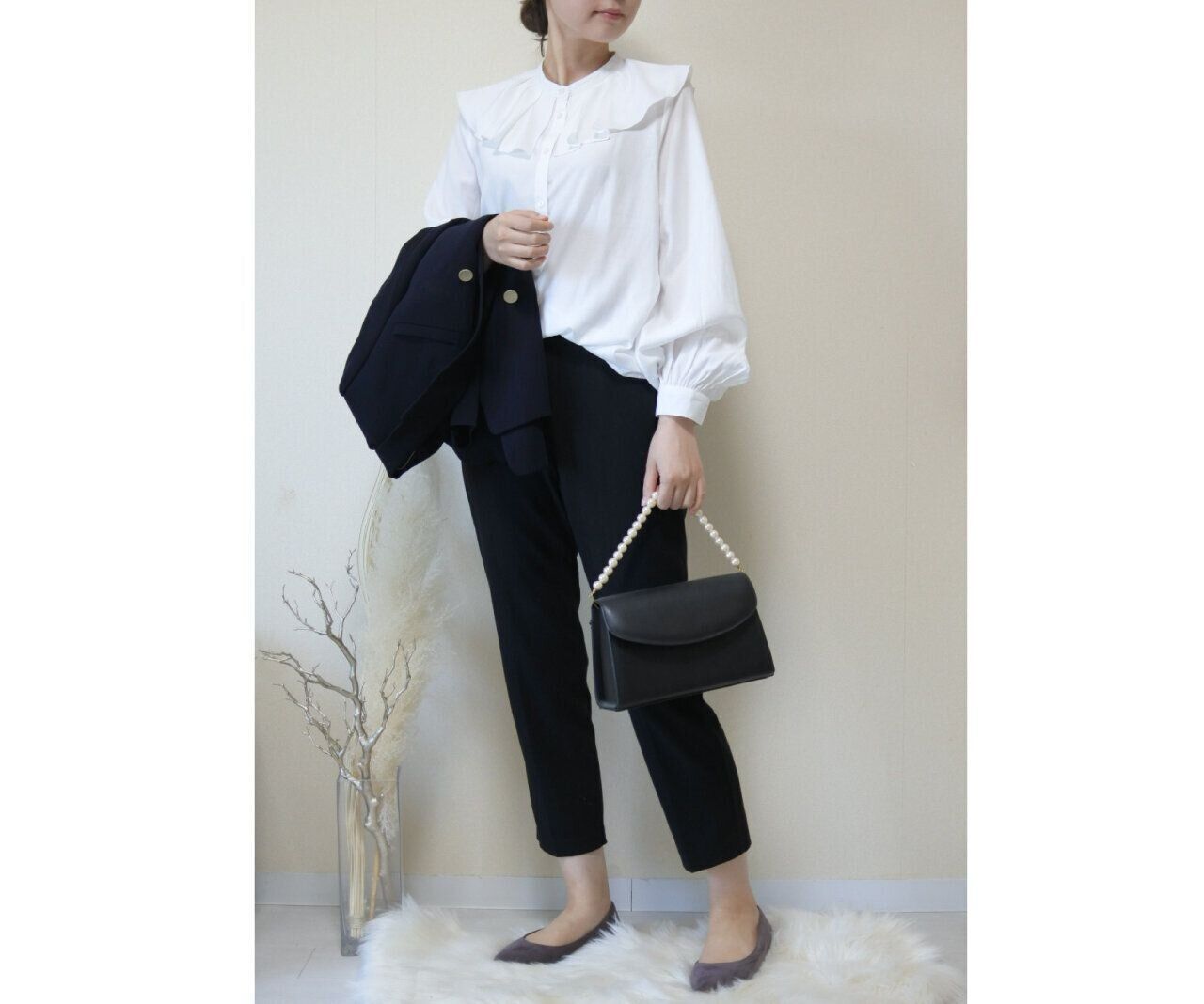意外とインナーに困るものですが、ブラウスがあれば解決!子どもっぽくならずアラフォーでもチャレンジしやすくなりますよ。