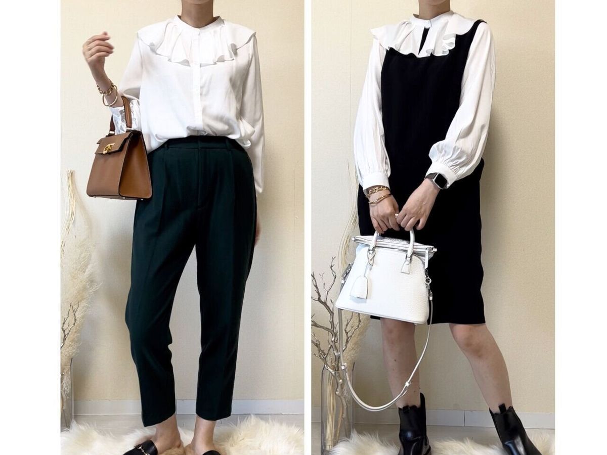 でもアラフォーは着こなしがむずかしく感じるかたも多いのではないでしょうか。今回はGUの新作のフリルブラウスを着こなし方といっしょにご紹介します。
