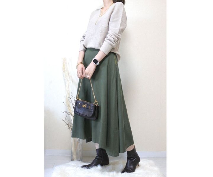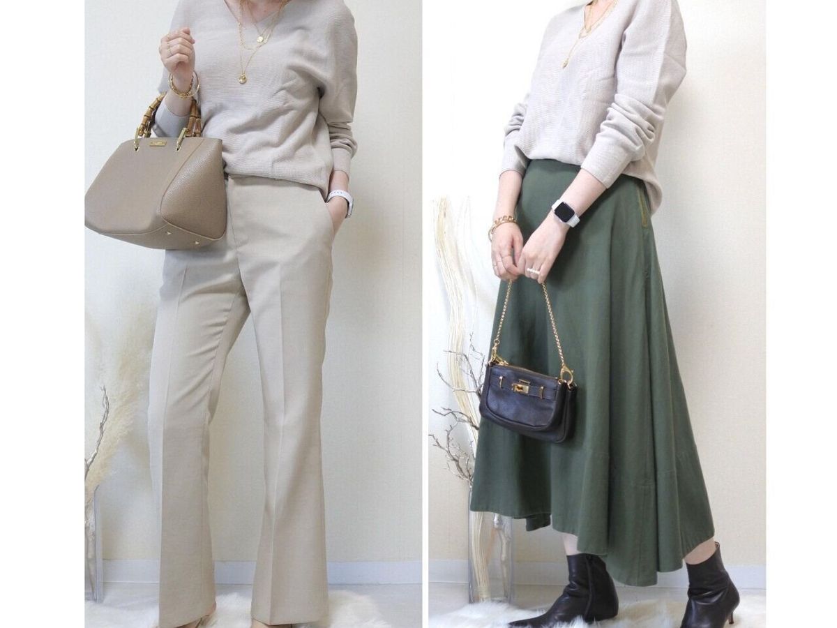 タイトスカート、フレアスカート、プリーツスカート、どのタイプもOKの万能ニット。
