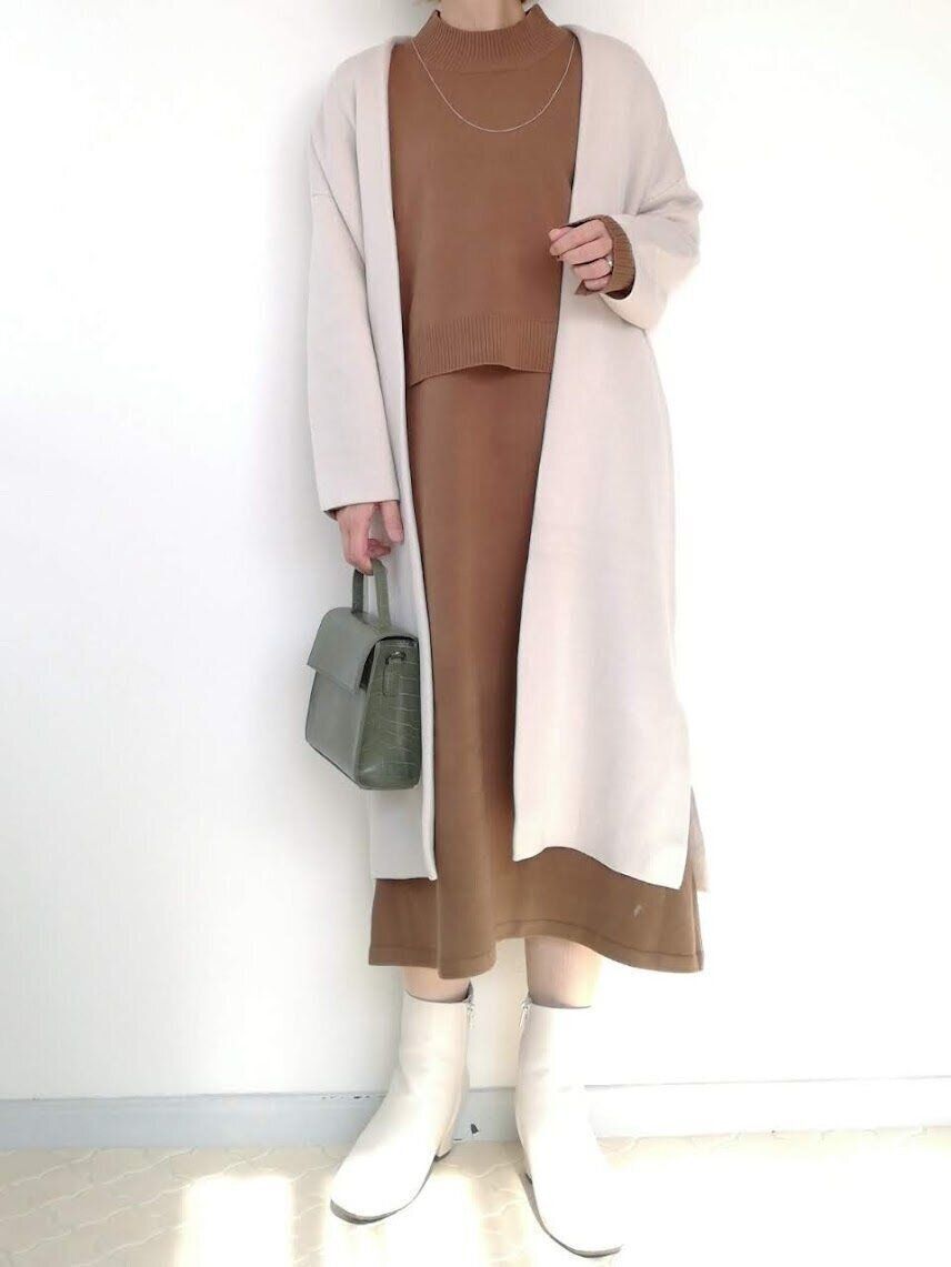 ニットベスト&ニットワンピースの2枚セット。そのまま着るだけで、今どきおしゃれなコーディネートが完成しちゃう優秀ワンピースなんです。