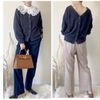 ベーシックなクルーネックデザインなので、フェミニン寄りではないカジュアル派さんも、違和感なく着ることができますよ。