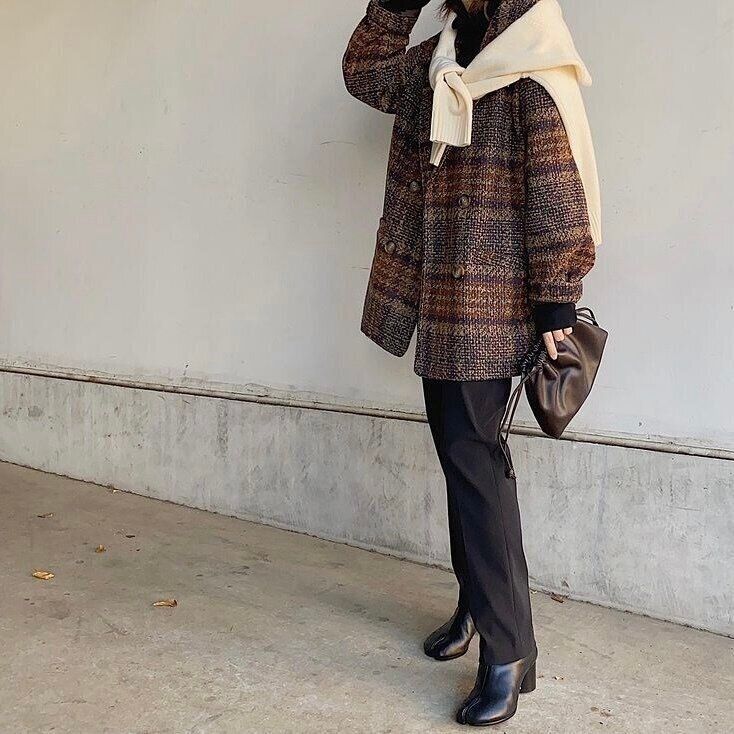 値段も良心的なClassical Elf(クラシカルエルフ)の「ブークレー起毛チェック柄ダブルジャケットコート(4,998円)」ならシックなトーンのチェック柄が取り入れやすく◎。
