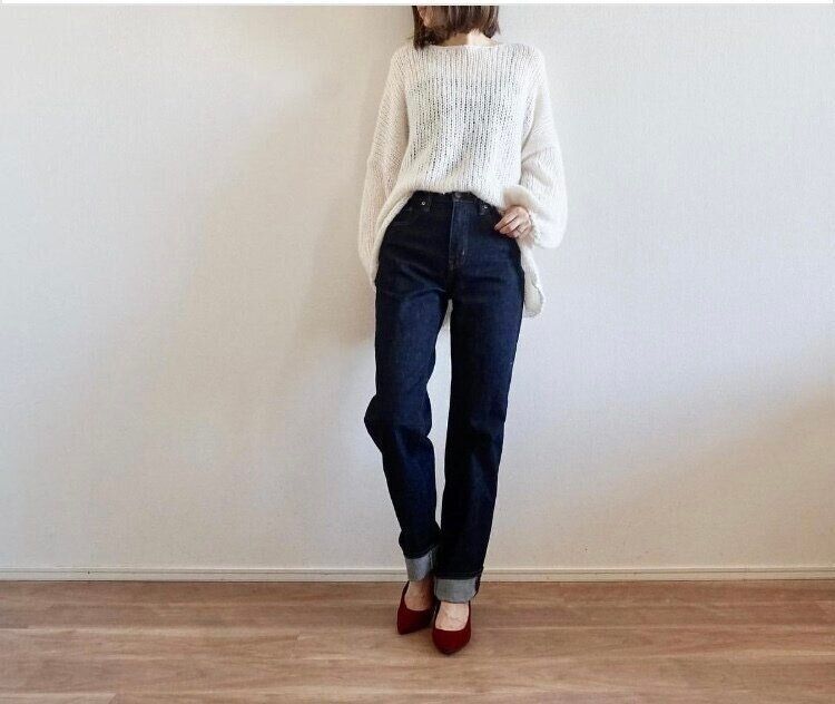 今回はInstagramで見つけた「スリムストレートハイライズジーンズ」(2990円/2021年12月16日現在)を使ったおしゃれなデニムスタイルをご紹介します。