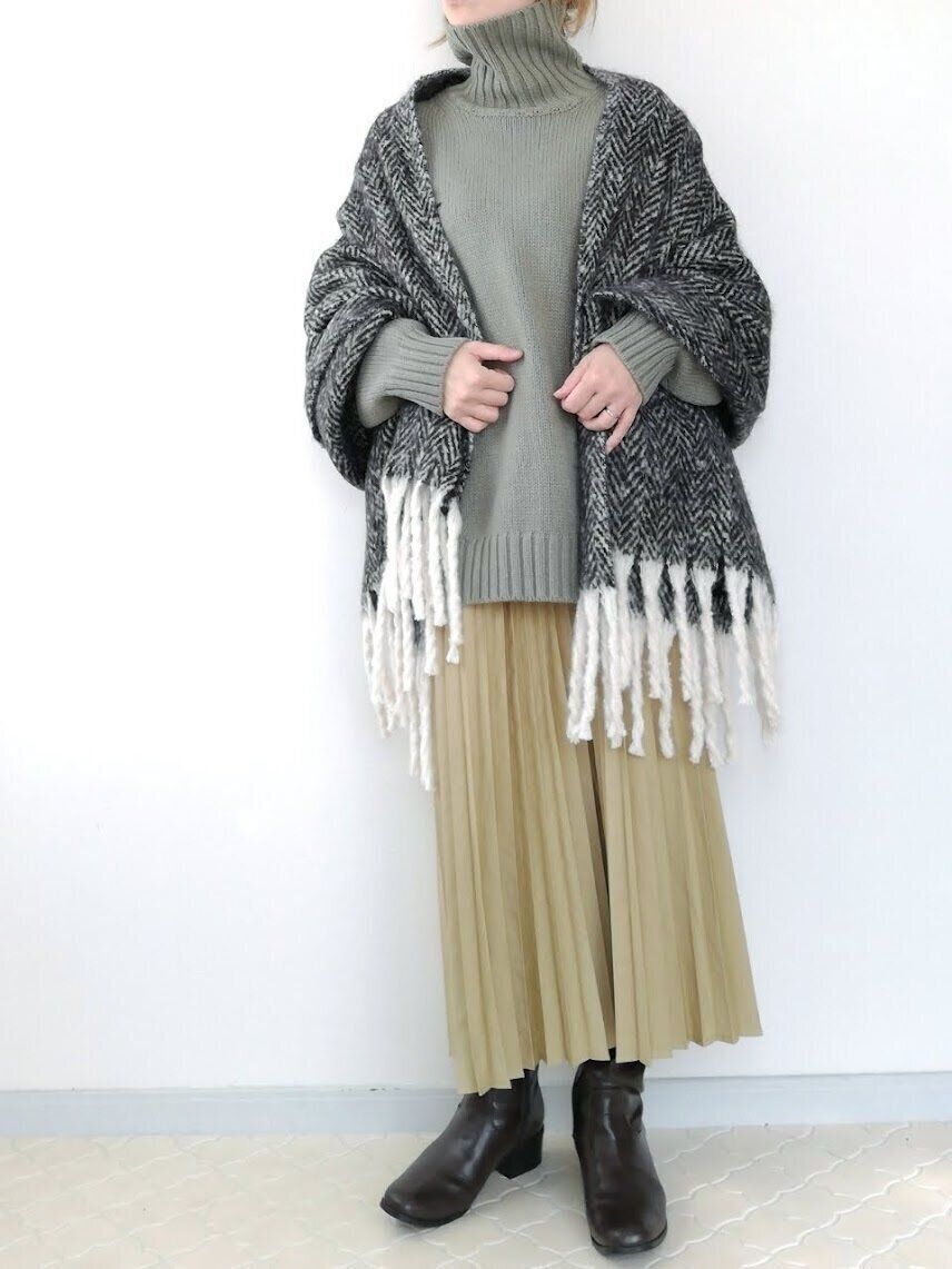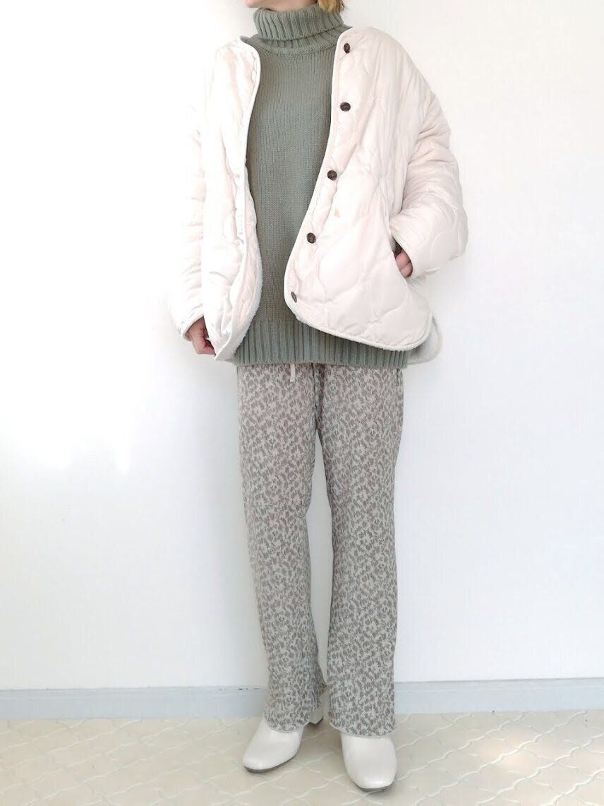 タートルネックニットを今っぽく着こなすなら、「ネック部分を折り返さない」着こなしがおすすめ。くしゅっとラフな印象を演出できますよ。