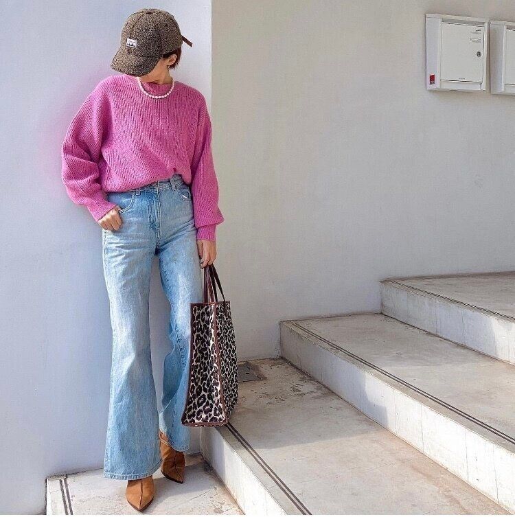 鮮やかなピンクには少し薄めのカラーのデニムを合わせることでより一層華やかさが増しますよね。持っている人も多い定番アイテムのデニムを使った、すぐにマネできるおすすめコーディネートです。