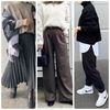 ピンクのヘアリーカラーセーターを使ったワントーンコーディネート。
