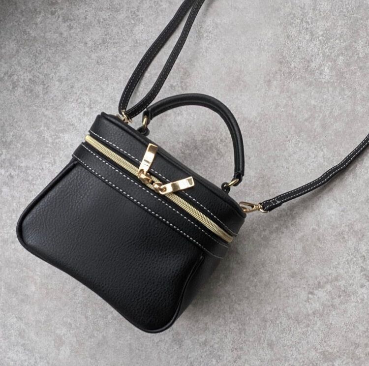 エコレザーのバニティバッグは高級感もあるデザインで高見えすること間違いなし。カジュアルなファッションもバニティバッグを取り入れるだけできれいめ要素をプラスしてくれます。