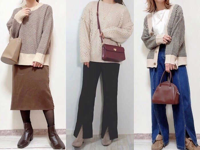 ニットを少しインしてメリハリをつけるテクニックはまさにお手本コーディネート。