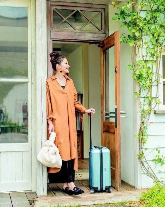 秋色のワンピは、 重ね着も楽しめて 1 枚でもサマになる!キャメルのシャツワンピースはパリッとした質感で、大人のきれいさを保ちながら、バックロングのヘムラインでこなれ感もバッチリ!1枚でも重ねてもOKの着回し力はもちろん、かさばらずにしまえる、旅のお利口アイテムです。ベロアパンツを合わせれば、秋ムード漂う大人の旅スタイルが完成♪