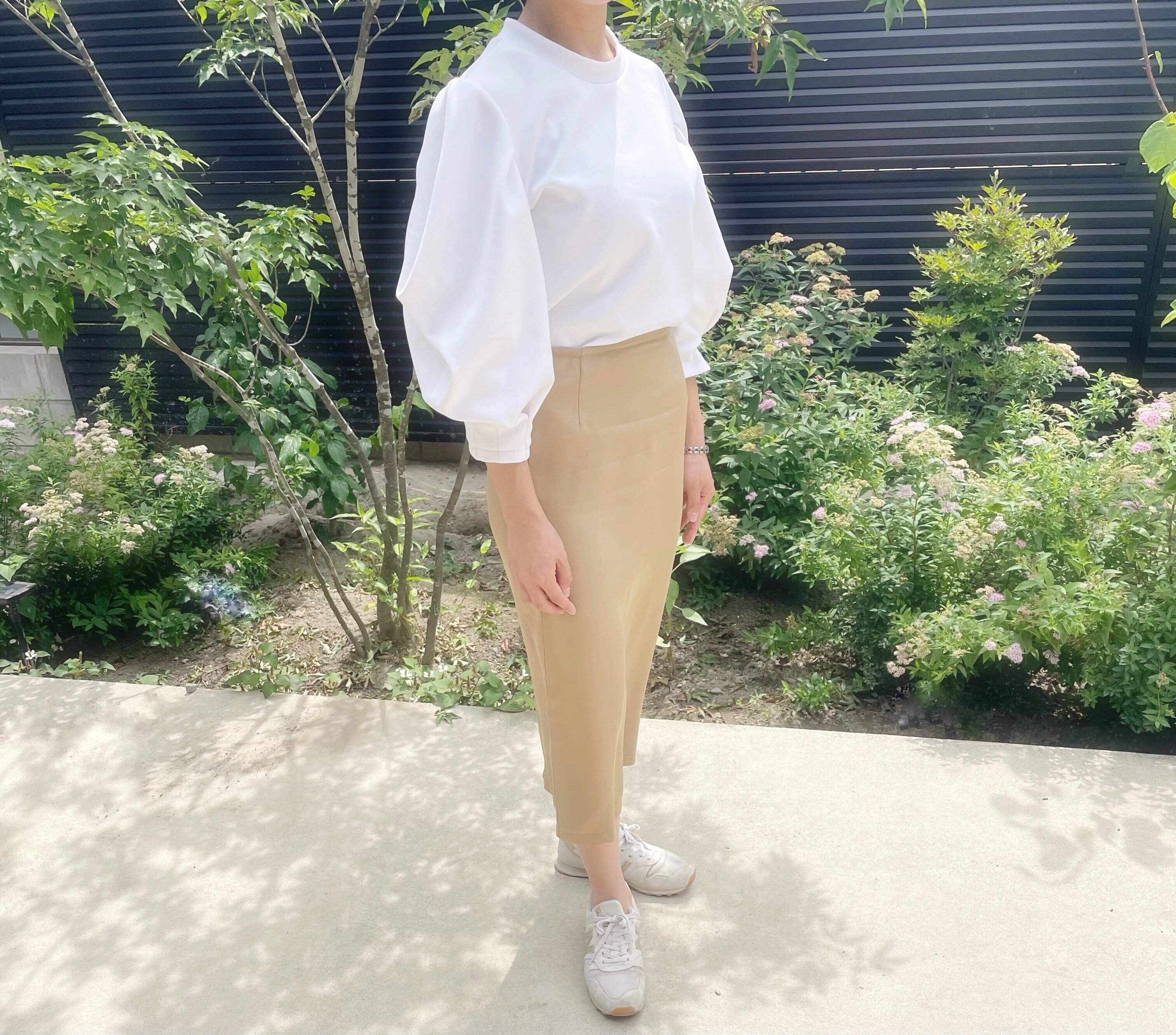 わたしの場合は、スカートはヒザ下のタイトスカートと決めています。ふんわりしたスカートは似合わず、着てもそわそわして落ち着かないのです。