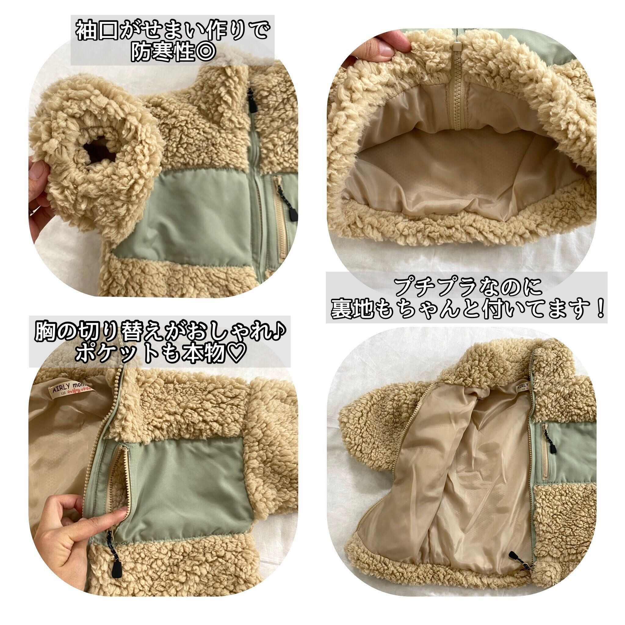 急に寒くなって去年のアウターはサイズアウト、外に行くのに着せるものが無い!という時に990円で買えちゃう可愛いアウターが見つかって大助かりでした。