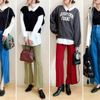 カラーバッグを差し色に入れるとよりモードスタイルに仕上がります。