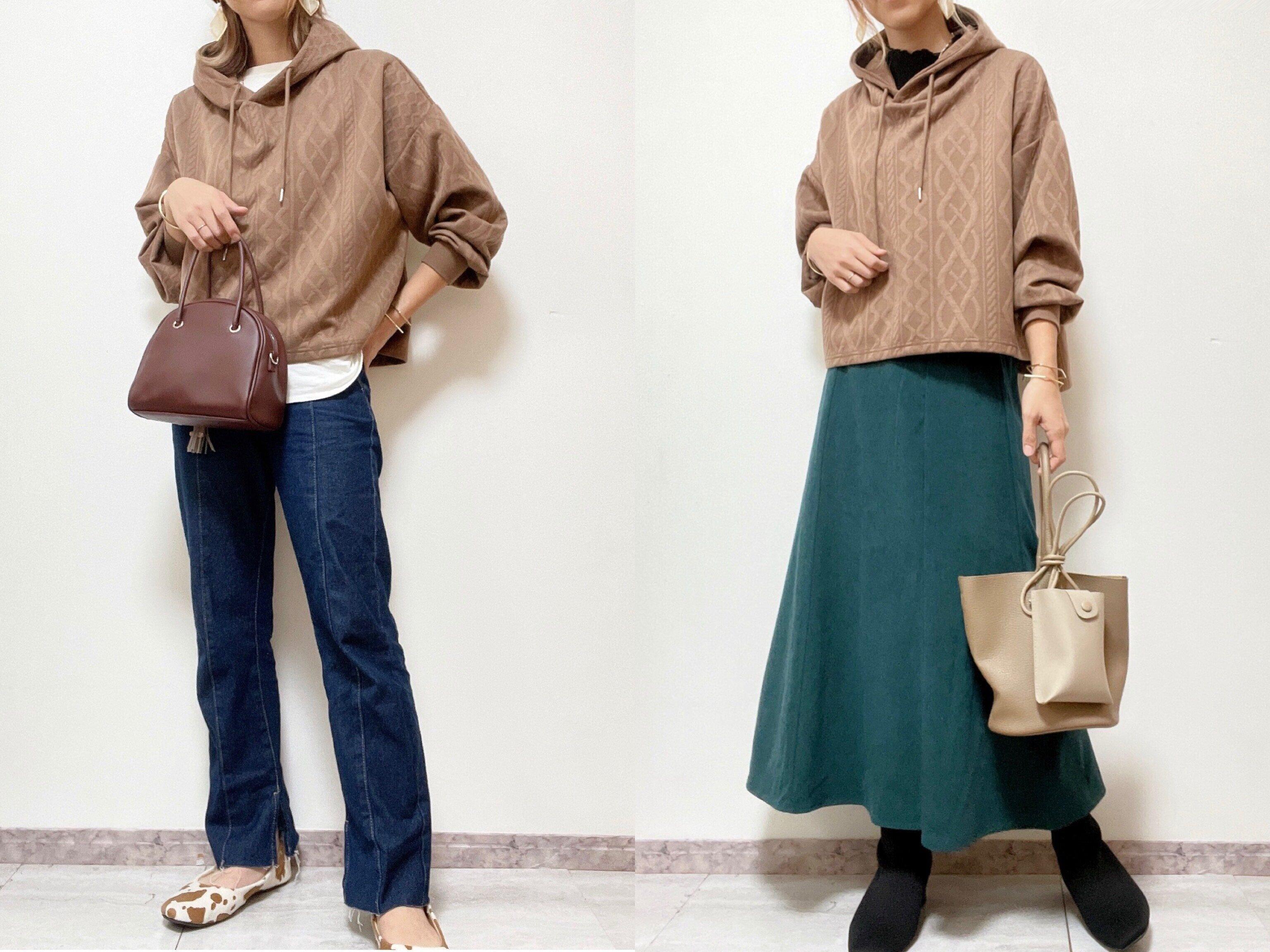 パーカー単体でも様々なテイストに合わせやすく、雰囲気もガラリと変えられるので着回しが効きます。