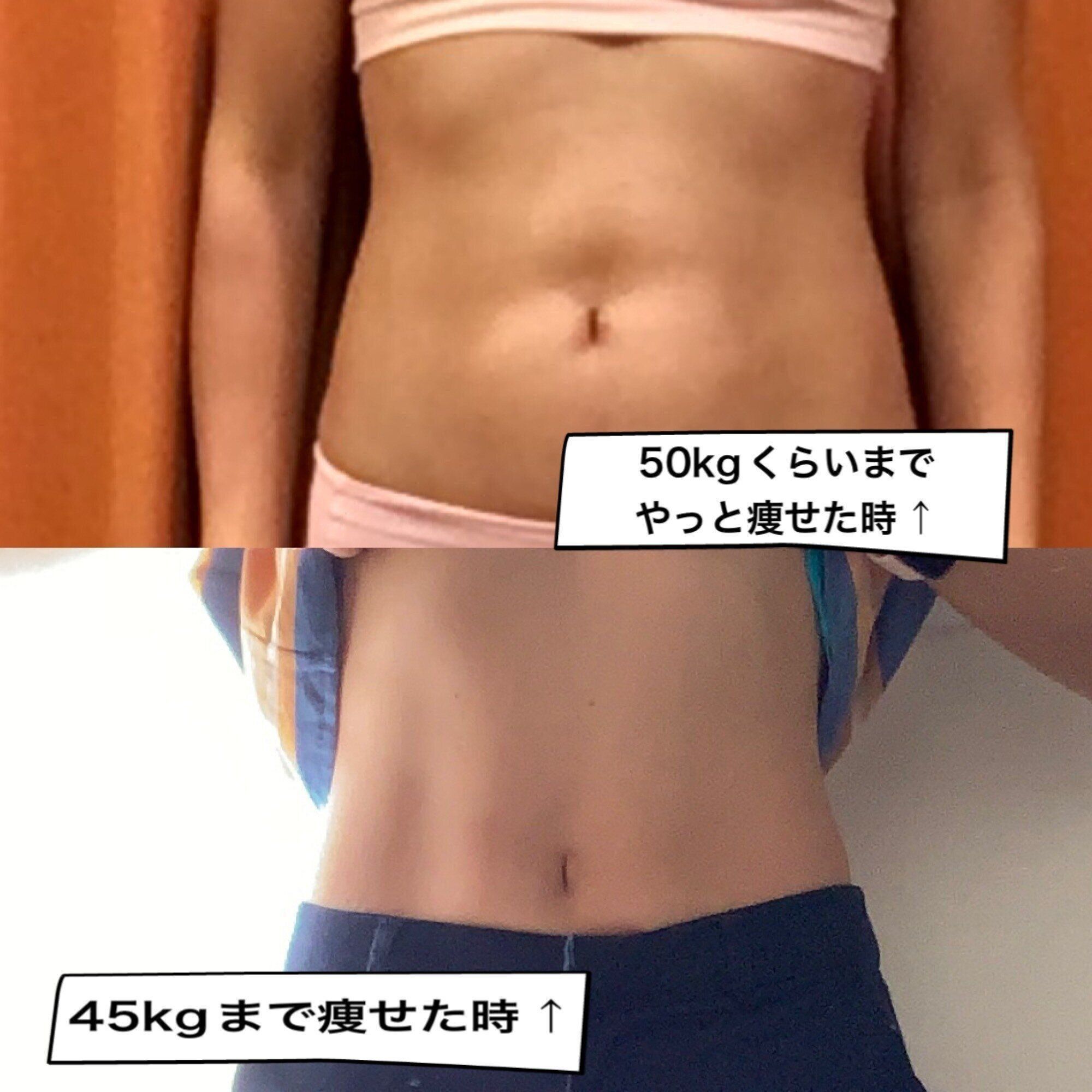 私の場合、体重を45kgまで落とした時には、くびれのないお腹になりました。もちろん細くて、お腹は薄くはなりましたが、同時にお尻の肉もなくなったためです。