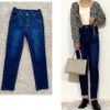後ろ側の一部分のみ目立たないゴム仕様で、トップスをインした時もスッキリ綺麗なシルエットで着られます。とても大人っぽく履ける綺麗めデニムスカートです!
