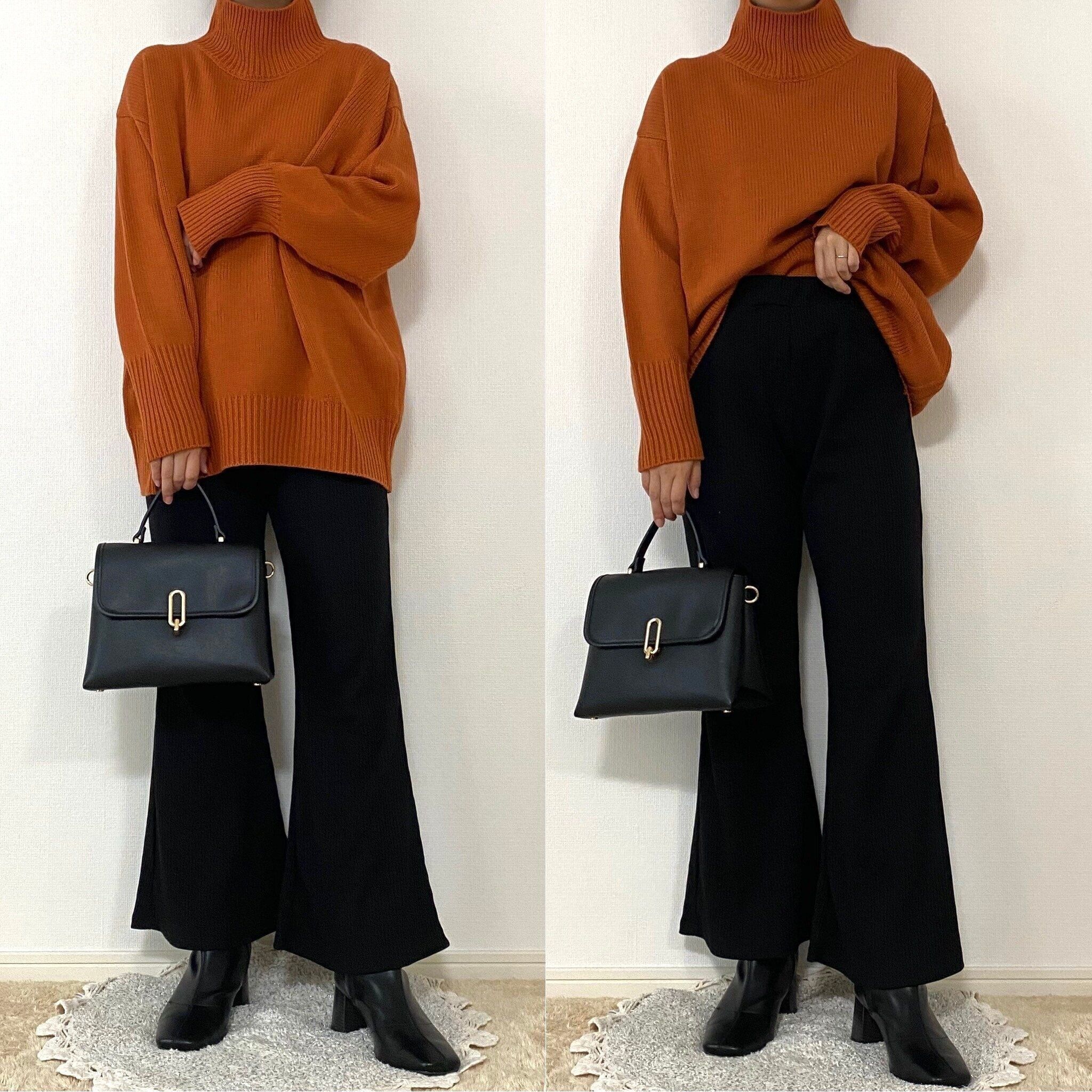 おまけにオレンジニットとも合わせてみましたがブラックと合わせるとコーデ全体が締まって見えますね!