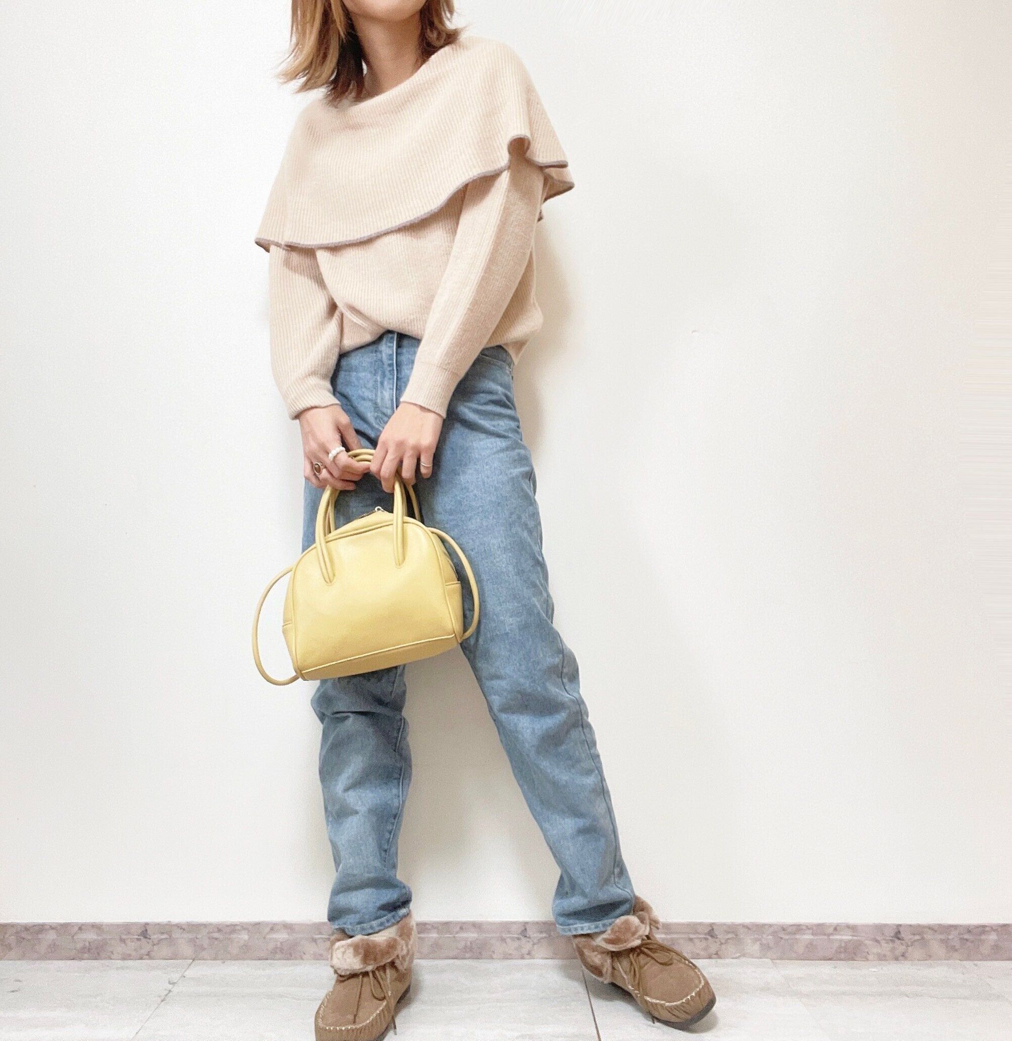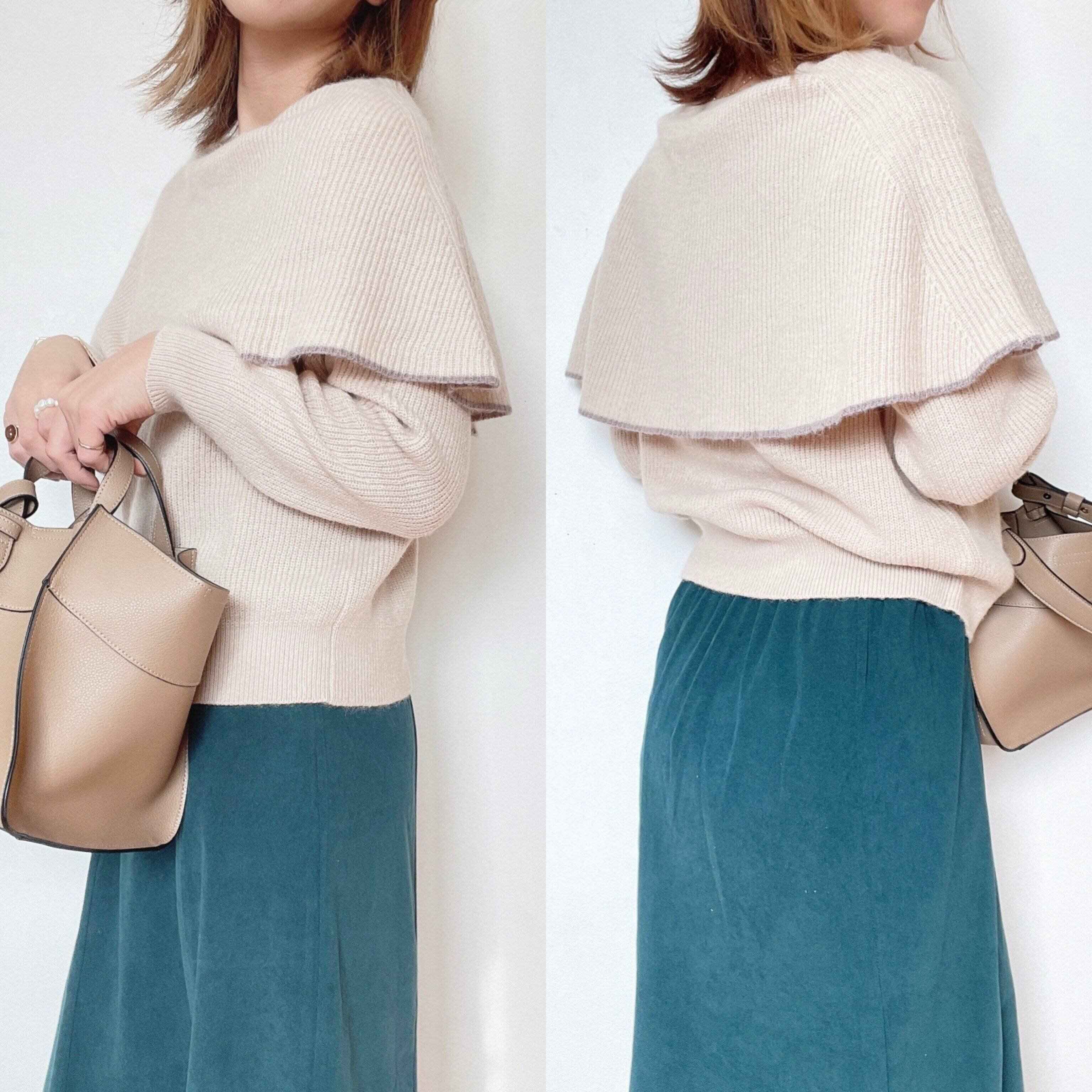 ふわふわの触り心地、グルっとパイピングが施されたケープが360度どこから見ても可愛くてキュンとするこちらのニット。Instagramで一目惚れをし、店舗にてお取り寄せしました。