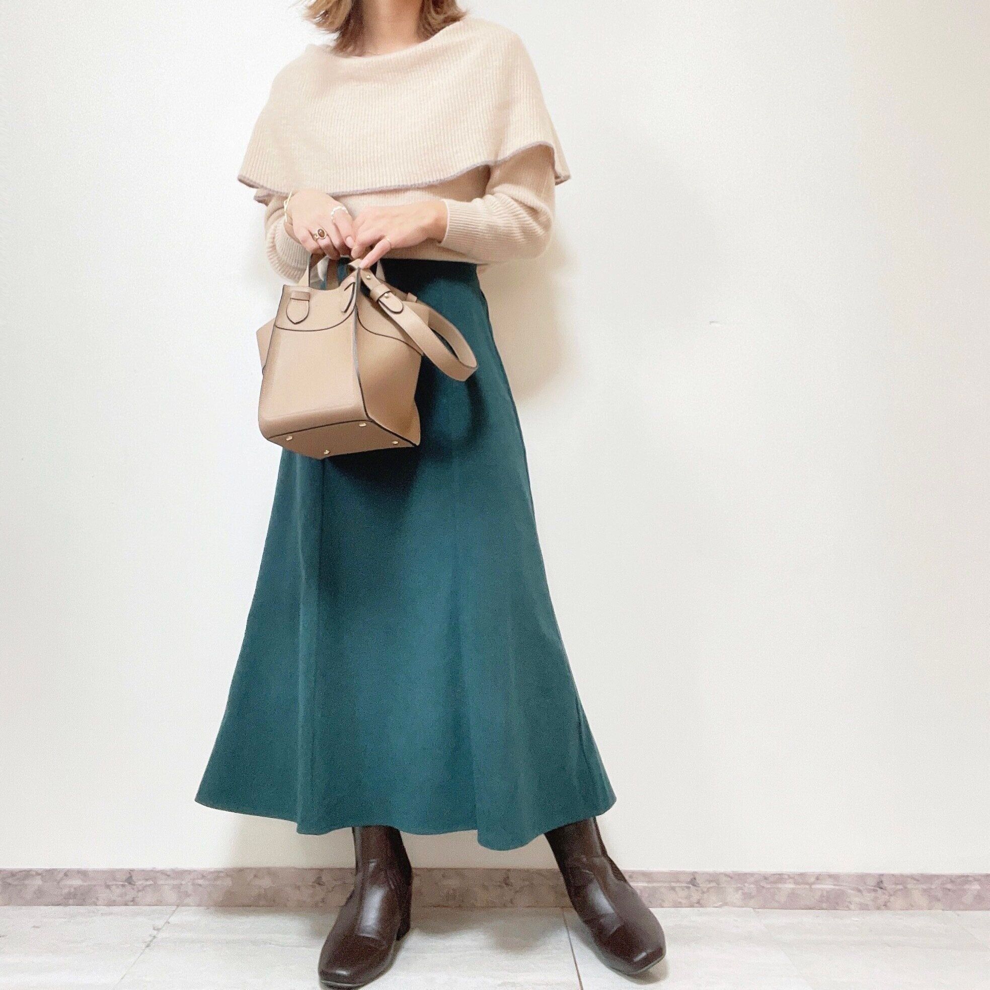 気になる肩幅もふんわりケープが包み込んでくれるので女性らしい丸み帯びたシルエットに。