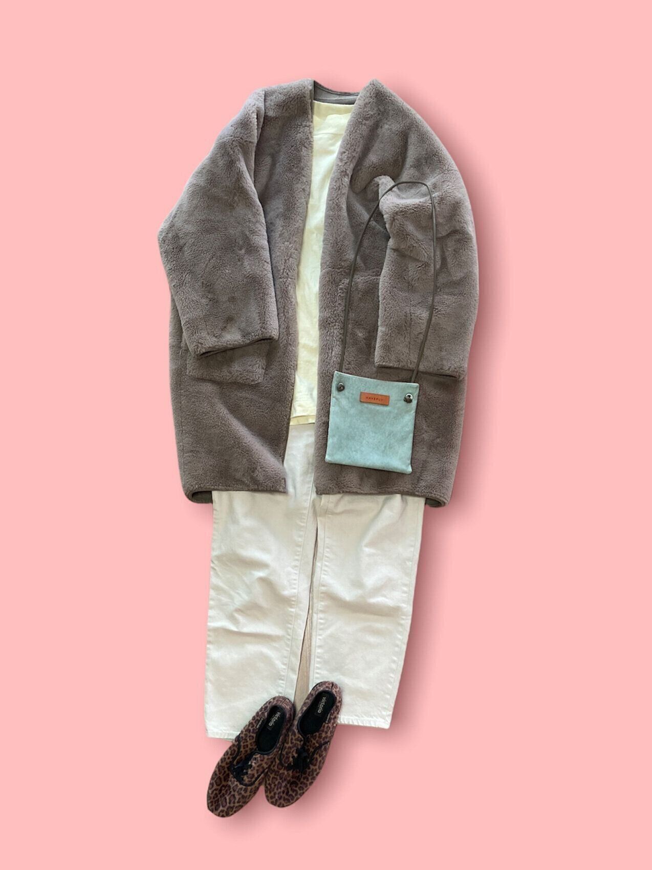 防寒もできて、季節感もアピールできるエコファーコートを主役に。裏地つきのものだとより暖かく過ごせます。明るいトーンでフレッシュに仕上げました。