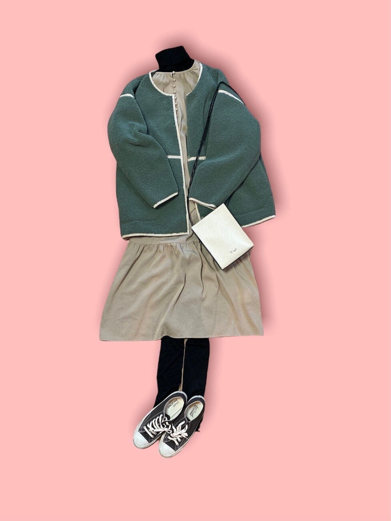 薄手のワンピースも、タートルネックニットをインナーに着こめばまだまだ着回せます!軽くて暖かなワンピースコーデに。