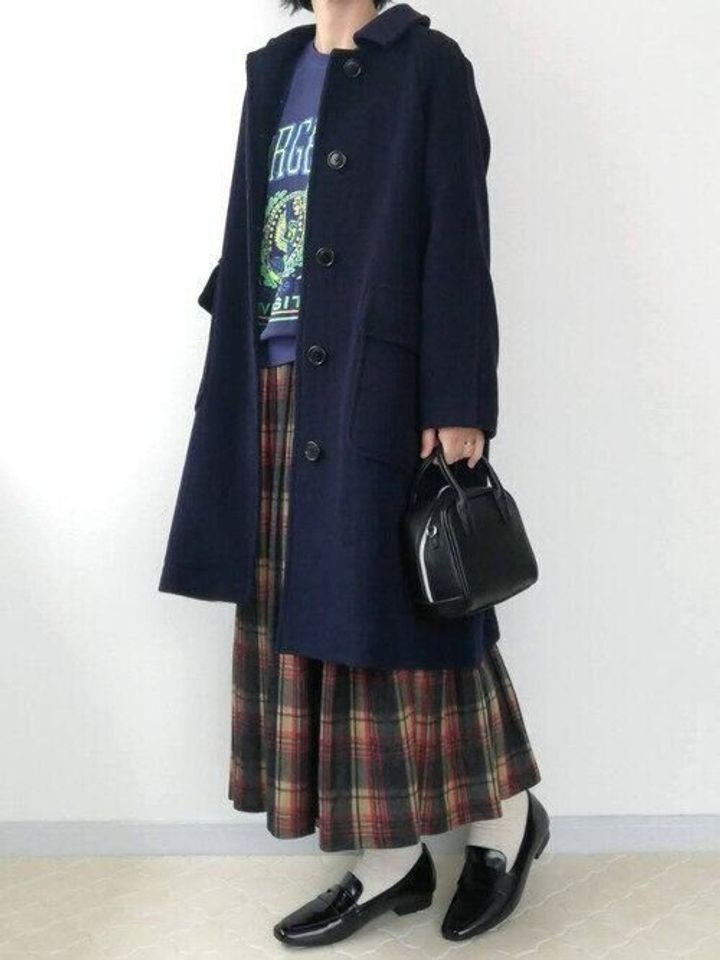 アウターで上半身が隠れてしまうので、ちらっと見えるボトムスの色や柄にこだわりたいところ。