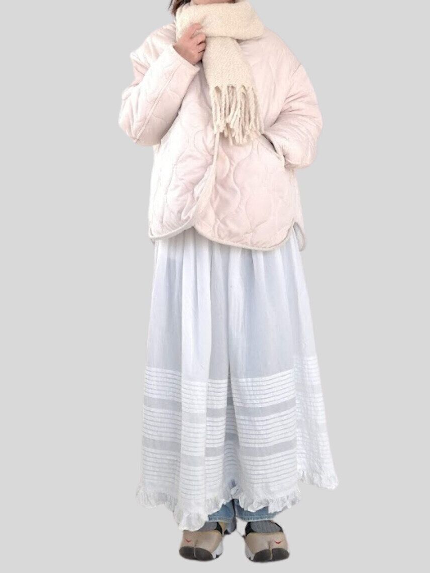 スカートの時は、しっかりロング丈のダウンコートで防寒することをおすすめします。