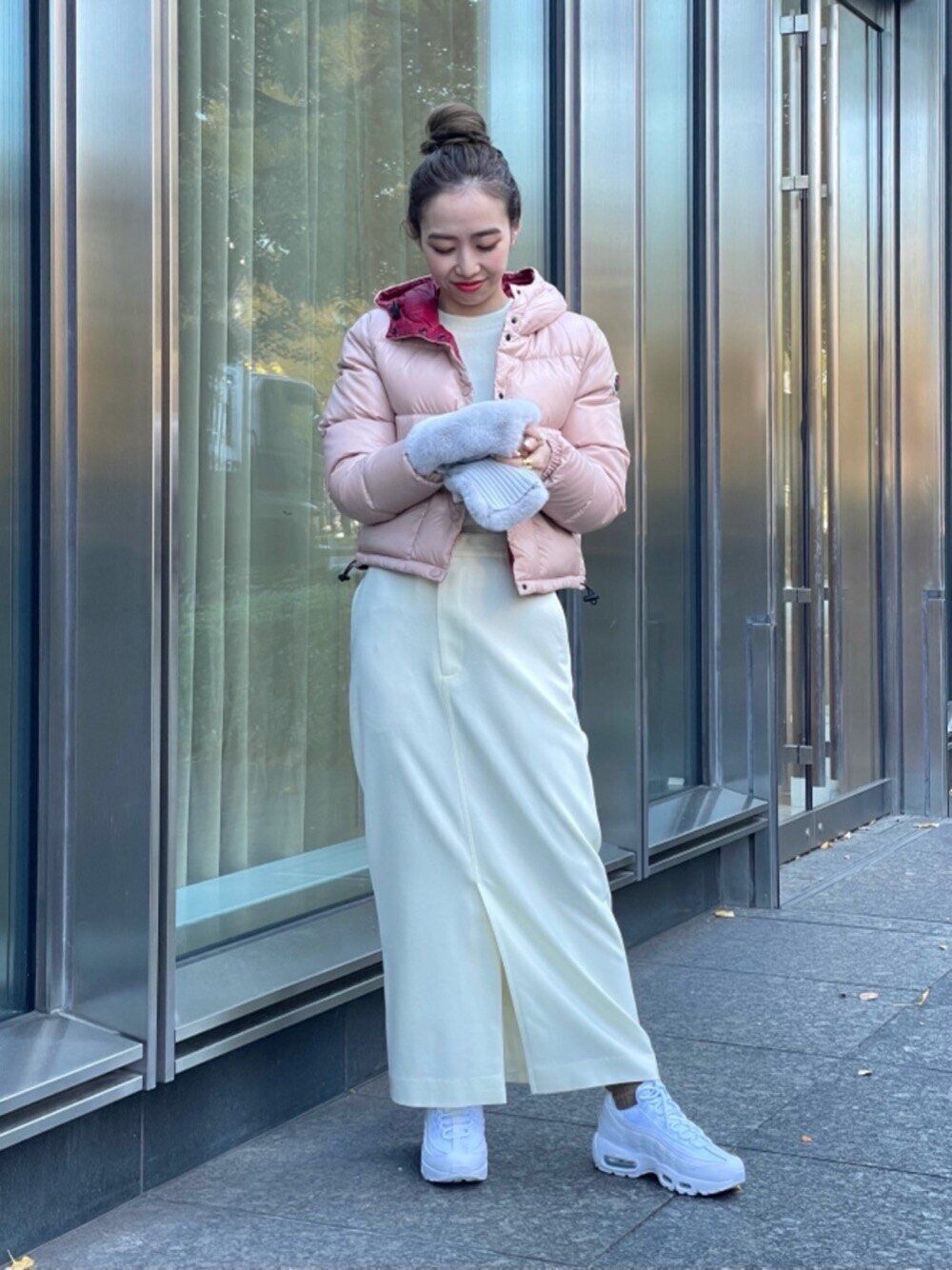 重たい印象になりがちなダウンコートも白を選ぶことでコーディネート全体に軽さが出ます。