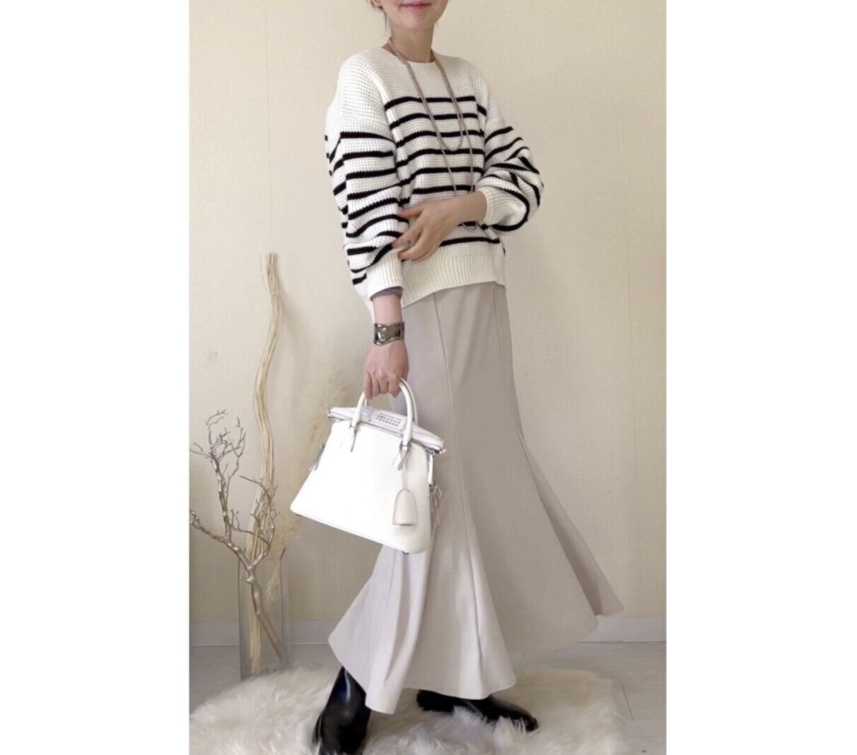 バッグも含めて明るいトーンでまとめるのも軽やかに見えておすすめです。