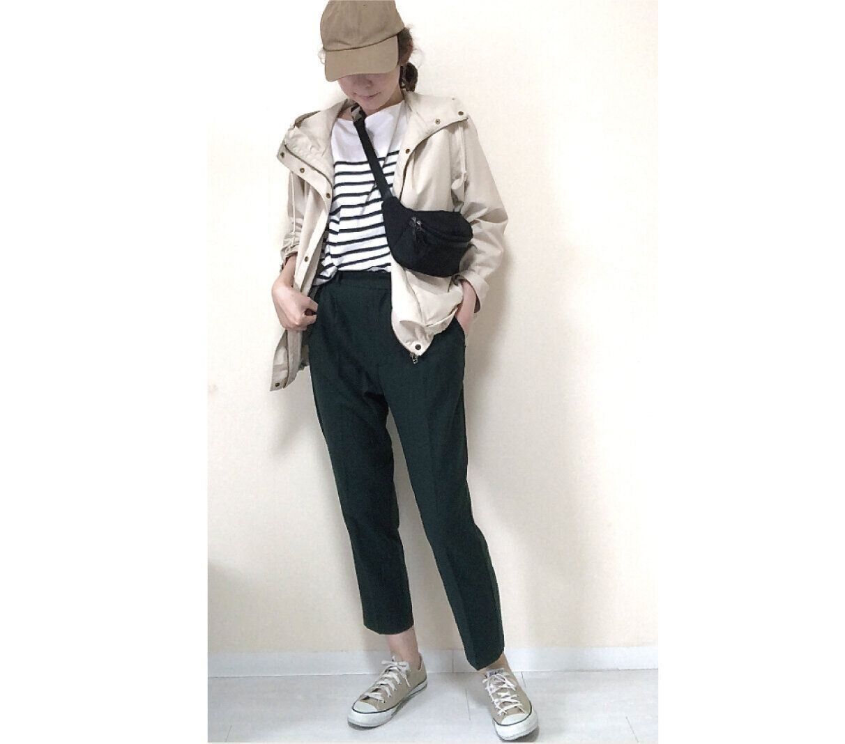 曇りで肌寒く感じる時は、サッと被れておしゃれ感がアップするベレー帽がおすすめ!全体のコーデを、ベージュトーンに合わせると上品な印象になります。