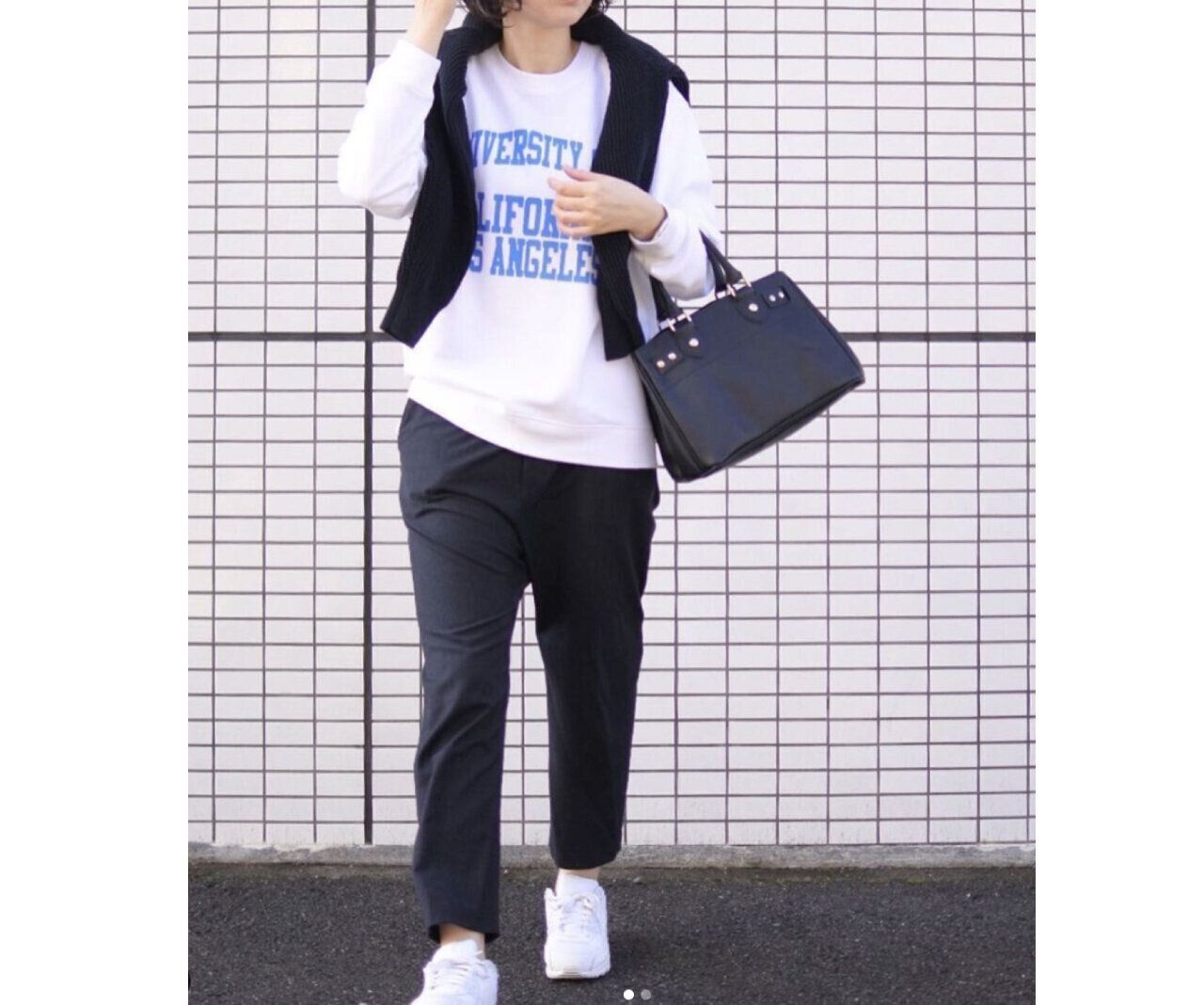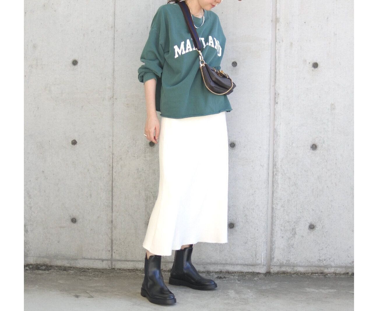 裏起毛のスウェットとコーディネートするのが今年らしいカジュアル感が出ておすすめです。